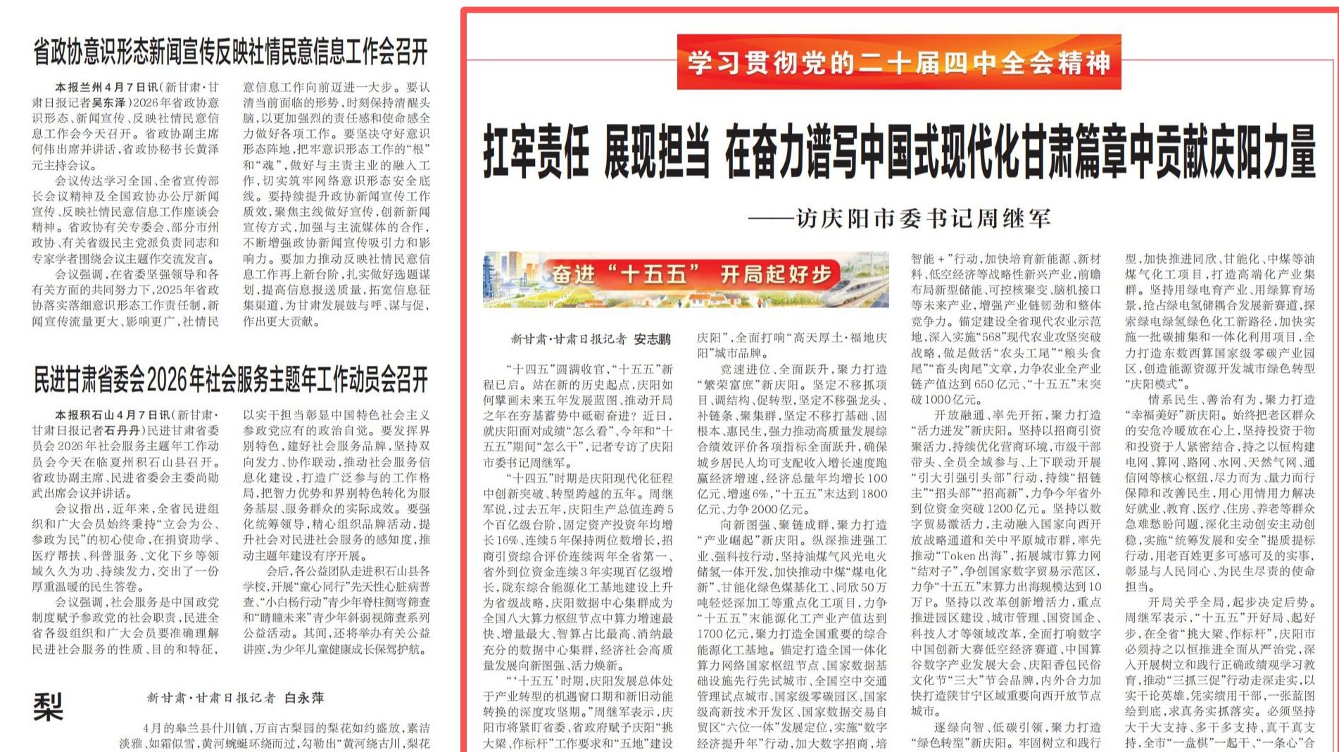 【奋进“十五五” 开局起好步】扛牢责任 展现担当 在奋力谱写中国式现代化甘肃篇章中贡献庆阳力量——访庆阳市委书记周继军