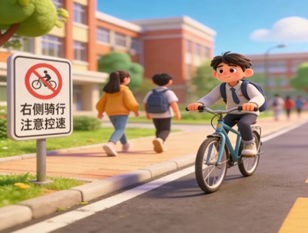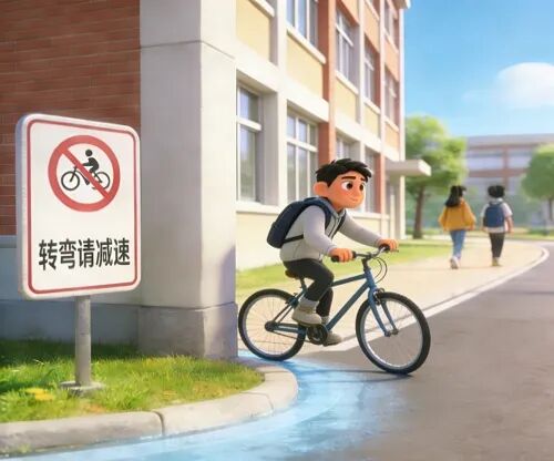 1. 严格遵守校园限速规定(建议时速不超过15公里/小时),冬季路面湿滑时进一步减速,遇路口、弯道、坡道及人流密集区域提前预判,主动礼让行人。