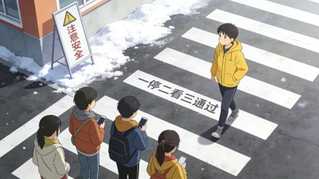 牢固树立“生命至上,安全第一”的思想,时刻紧绷交通安全这根弦。主动学习交通安全法规及校园交通管理规定,深刻认识校园人车混行、路况复杂,加之冬季路面湿滑、能见度低等现实风险,时刻保持高度警惕,增强风险防范意识,自觉做到防患于未然。