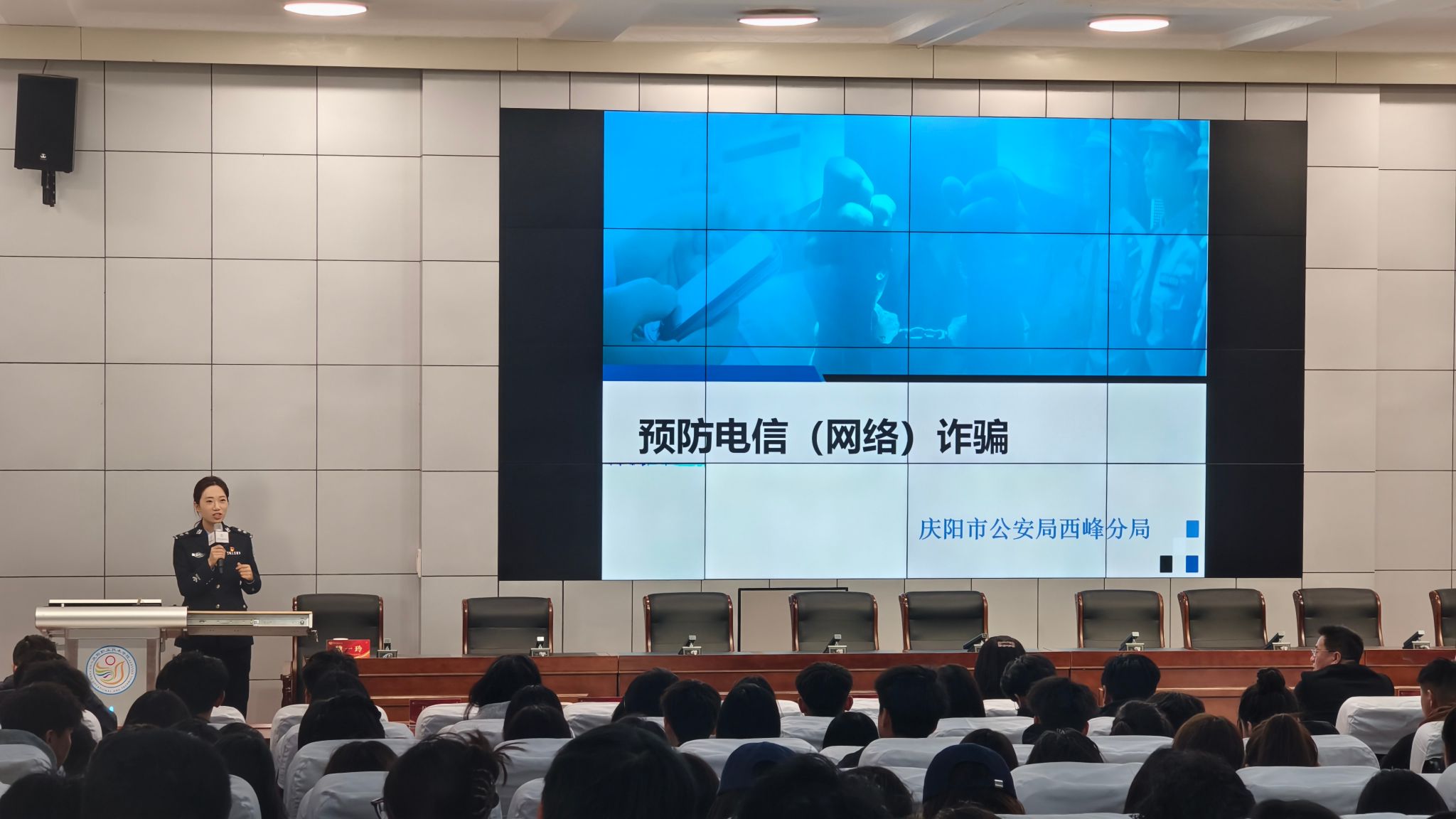 随后,魏一玲警官开展反电信诈骗专题授课。她结合西峰辖区电信诈骗发案数据,梳理出网络刷单、网络贷款、冒充客服退款、网络交友诱导投资等校园高发诈骗类型,通过典型案例拆解诈骗分子的惯用套路和作案手法,清晰讲解各类诈骗的防范要点与应对措施,提醒师生牢记“不轻信、不透露、不点击、不转账”的反诈准则,遇到可疑情况及时核实并拨打110报警。