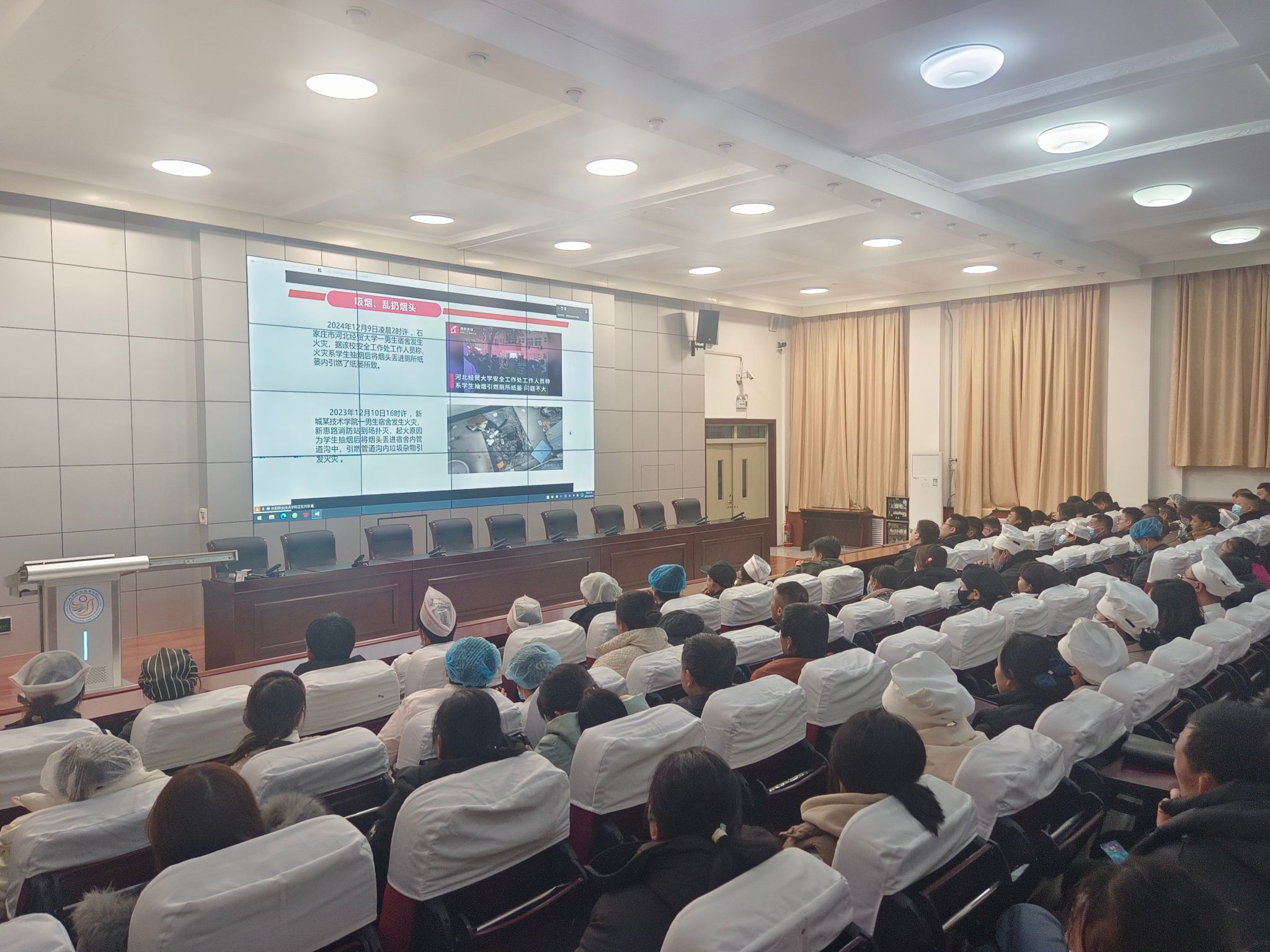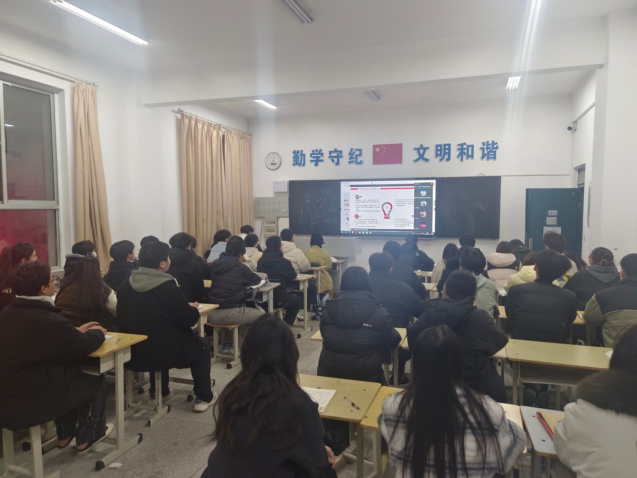 为进一步强化校园消防安全管理,切实提升全员应急处置与自救互救能力,12月21日晚19:30,我院举办“筑牢安全防线 护航平安校园”专题消防安全培训讲座暨主题班会活动。活动特邀消防支队赵文凯同志主讲,全院师生、校内服务企业员工及在建工地施工人员分场地集中,通过腾讯会议线上联动,实现全员覆盖、同步参训,凝聚消防安全共识,共筑校园安全防线。