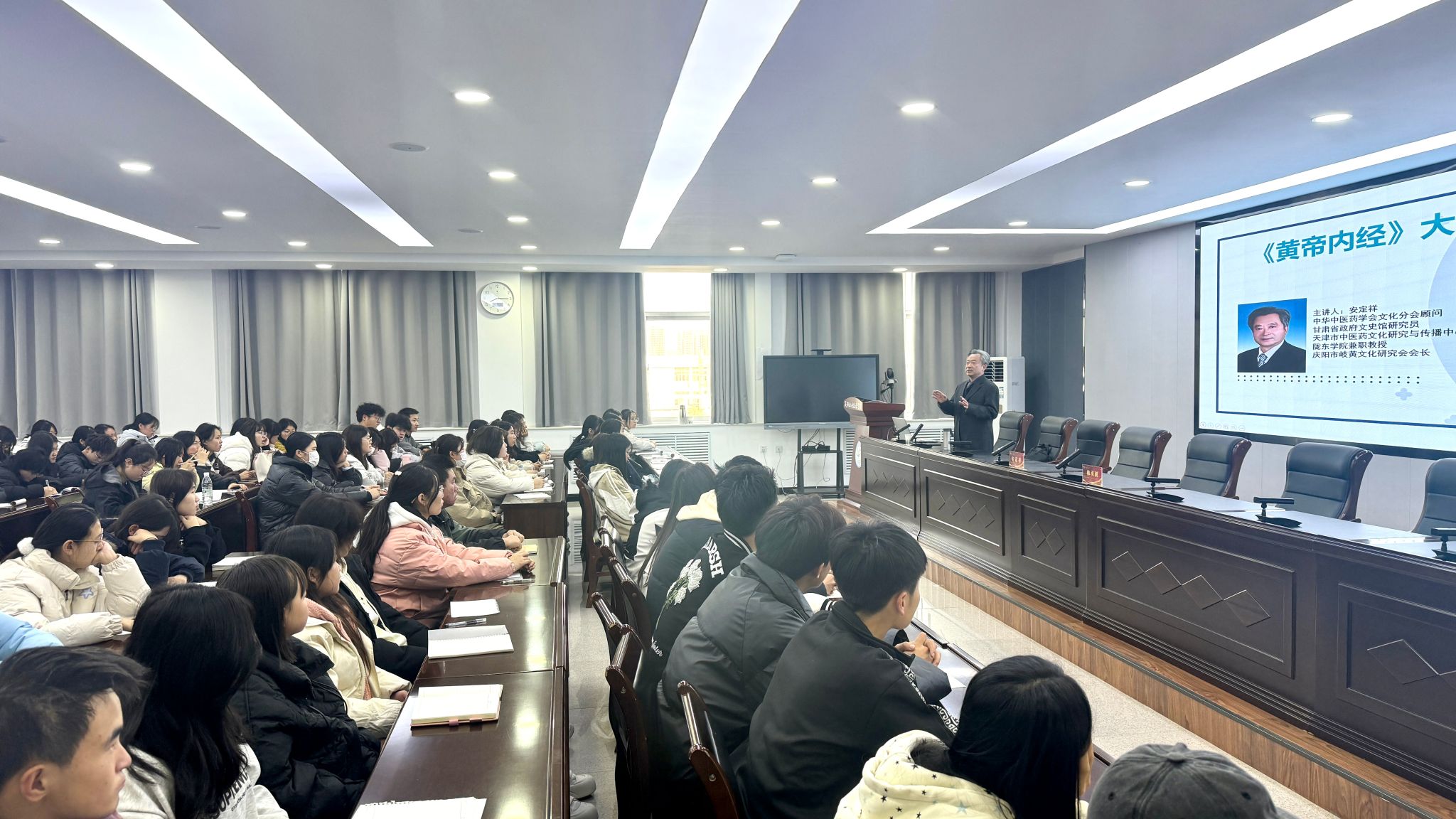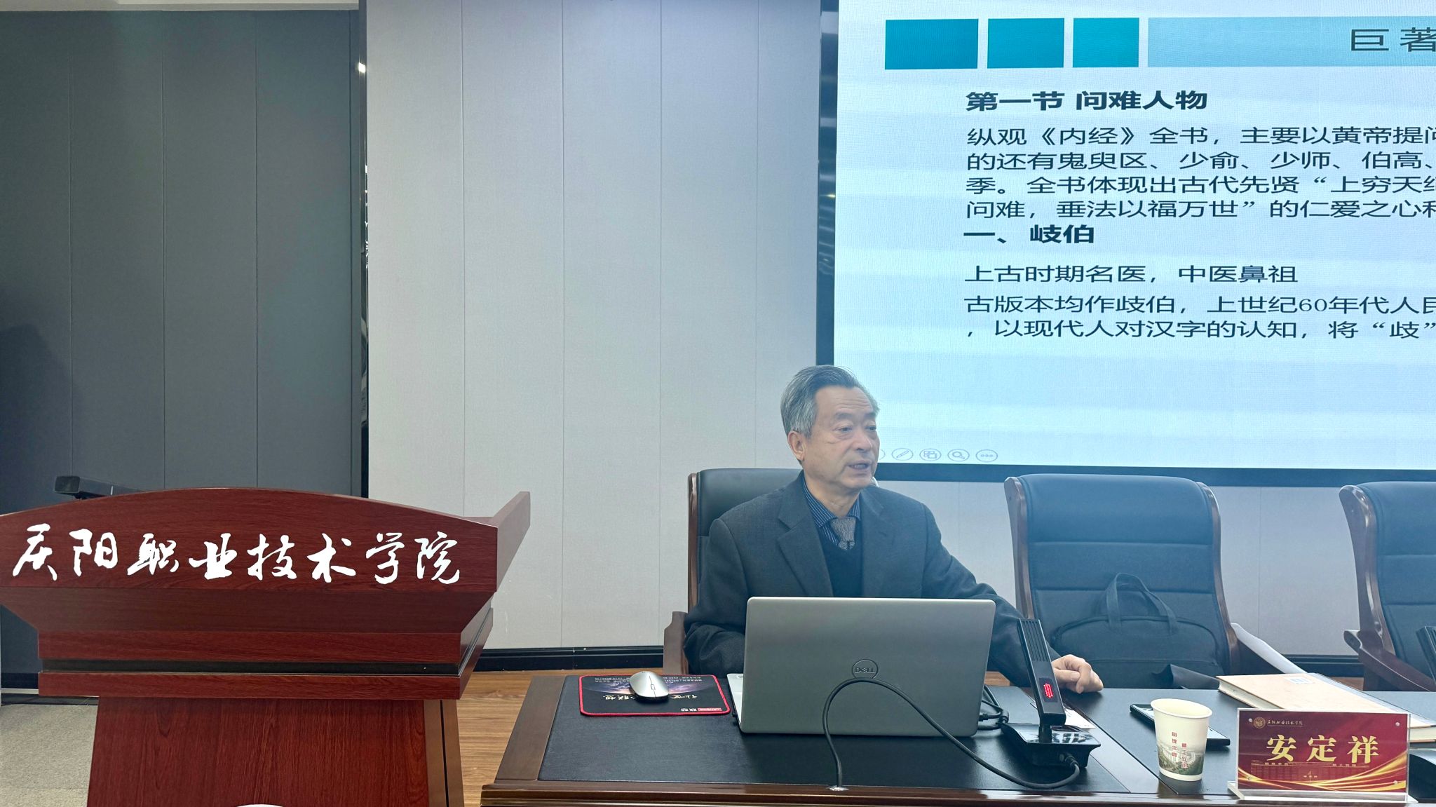 10月31日,庆阳职业技术学院举办“传承・融合・育人—岐黄文化融入康养实践”系列专题讲座(第二期)。本期特邀甘肃省政府文史馆研究员、庆阳市岐黄文化研究会会长安定祥先生以《黄帝内经大智慧》为题做专题讲座,公共管理系智慧健康养老服务与管理专业师生200余人参加活动,公共管理系党支部书记帅勇刚主持活动。