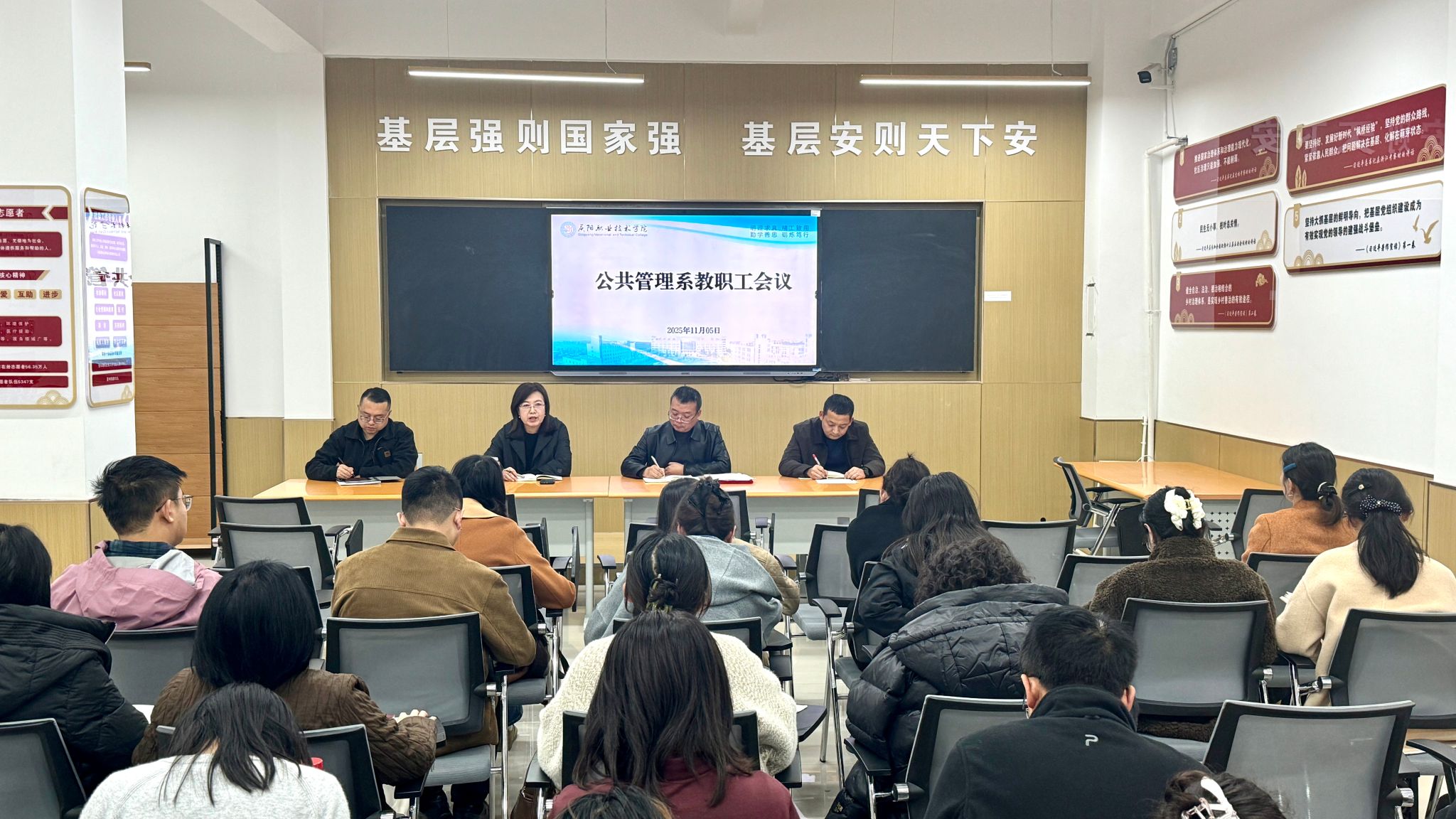 11月5日,公共管理系召开期中工作会议,联系领导、党委副书记王婕到会指导并讲话,全体教职工参加,会议由党支部书记帅勇刚主持。