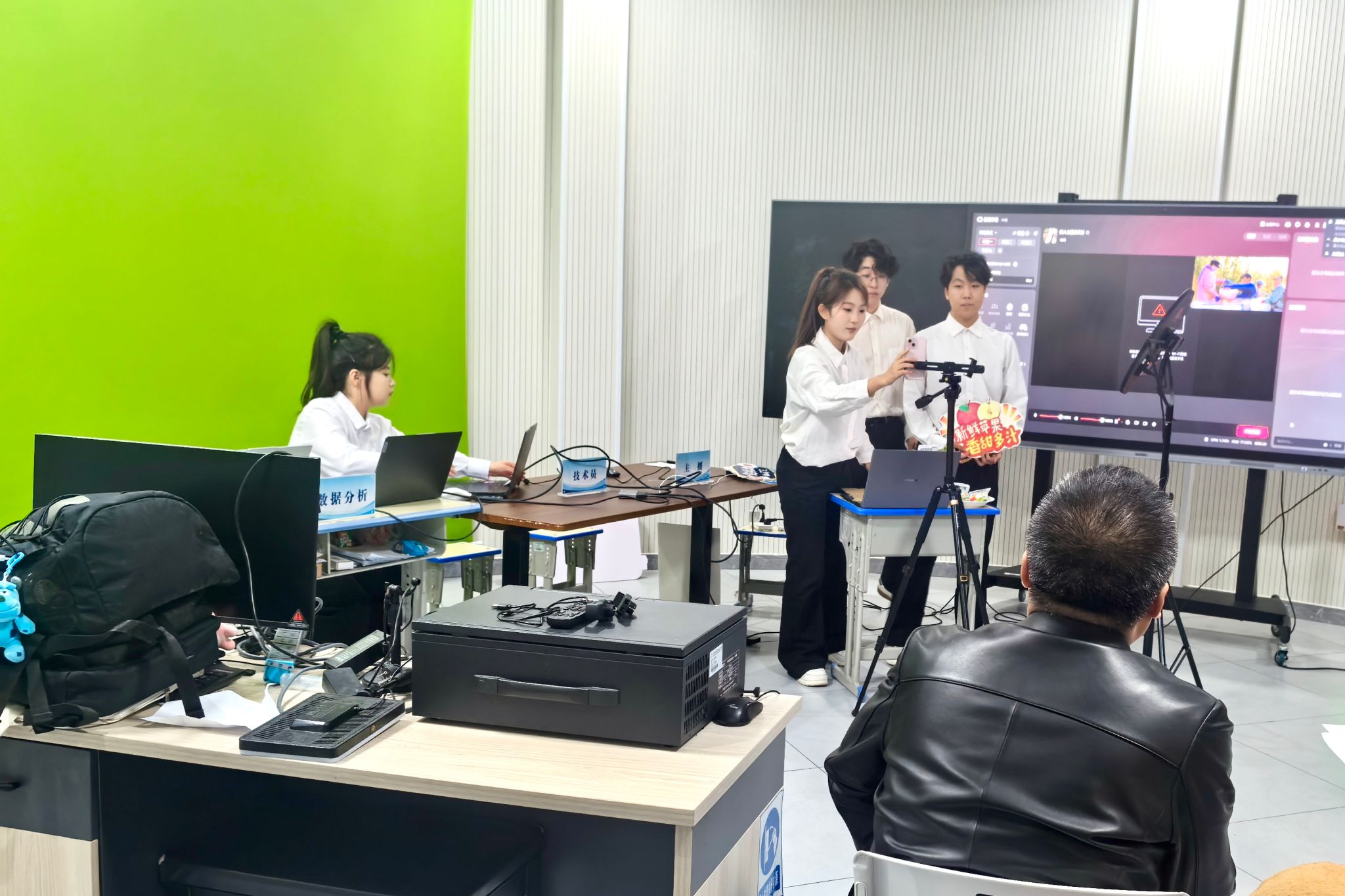 在学院统一部署和教务处的统筹安排下,2025年11月12日,庆阳职业技术学院直播电商赛项正式开赛,本次比赛共有4支团队的14名学生参加,公共管理系抽调5名评委和5名工作人员参加,党委书记张建军到场观摩指导。