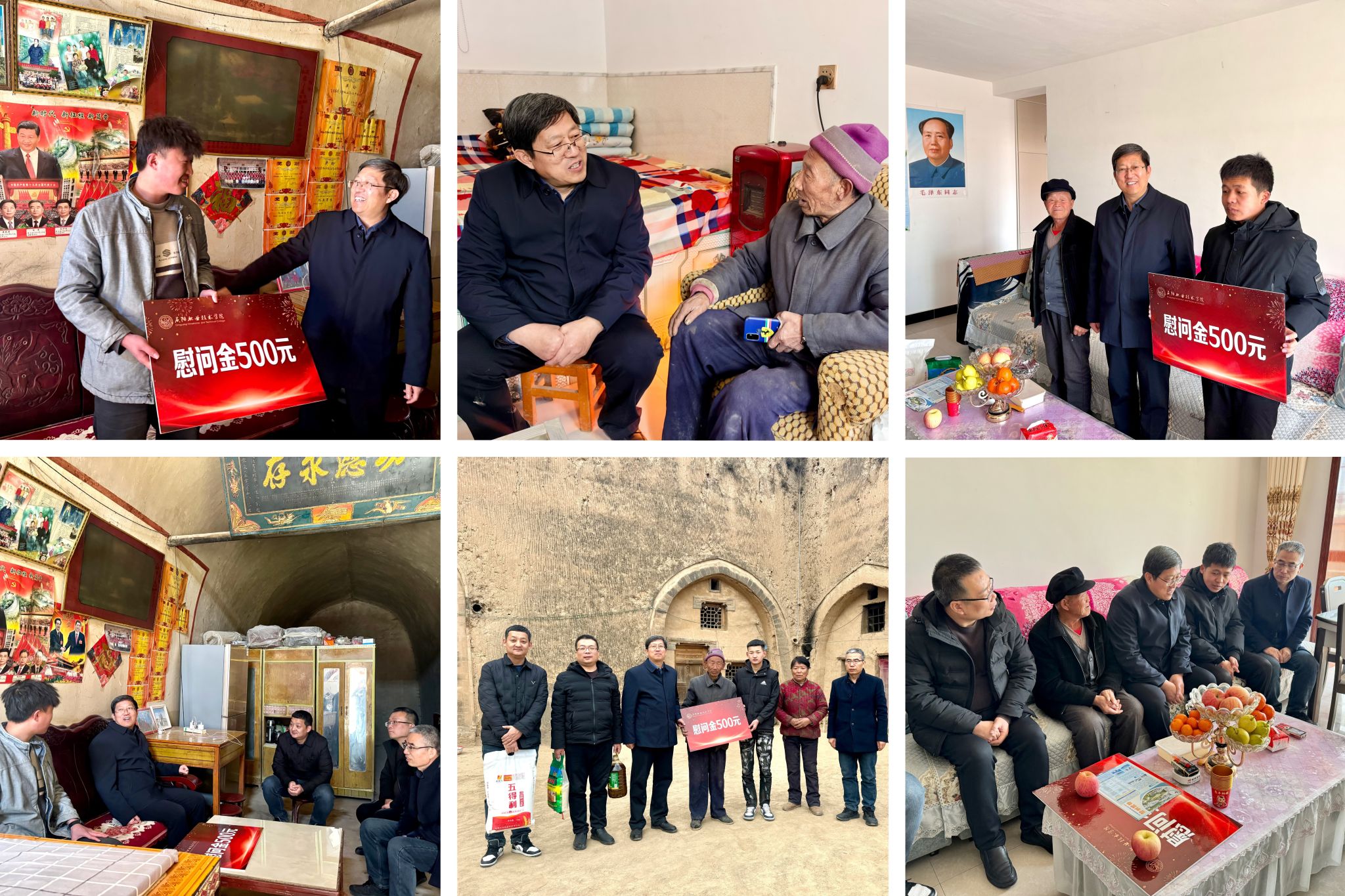 每到一户学生家中,王院长都与学生及家属亲切交谈,详细询问家庭生活状况与学业进展,转达学院祝福与关怀,送上生活物资与慰问金,鼓励他们克服困难、勤奋学习、立志成才,用知识和技能改变命运,并表示学院将提供力所能及的资助。