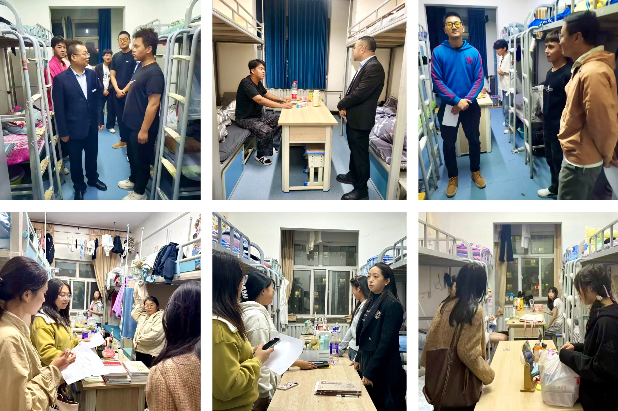晚间,各班继续开展主题教育班会,围绕理想信念、爱国主义、校史校情、安全法治、校规校纪、专业认知与职业规划、心理健康、诚信感恩、防艾教育及资助政策等主题进行深入学习和讨论。各班还组织了关注学院官方微信公众号的活动,拓展信息渠道。晚休期间,系班子成员与辅导员深入学生宿舍走访,了解新生入住情况,解答疑问。