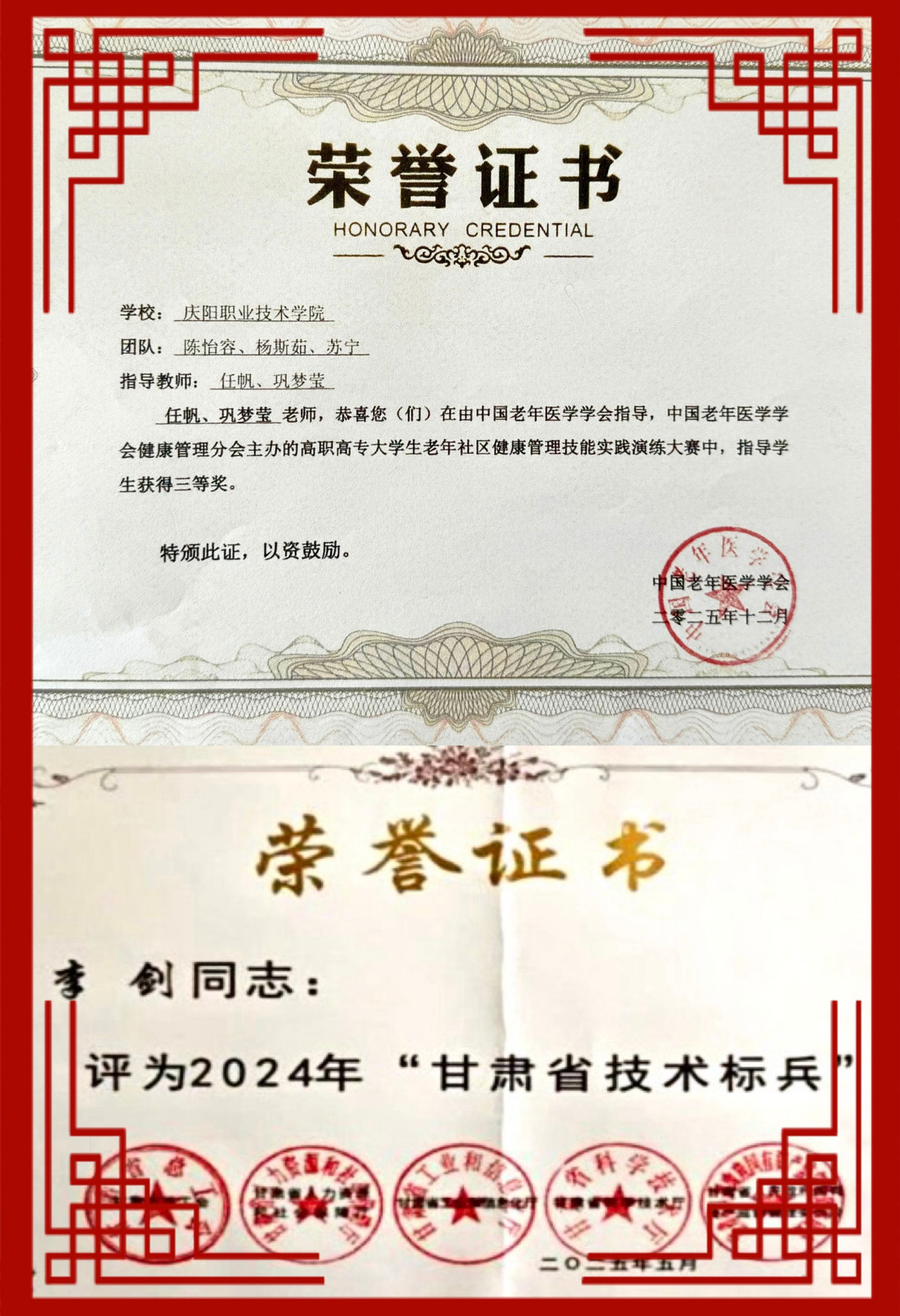 全系上下积极投身“新双高”建设与“五金”任务落实,教育教学成果丰硕。《老年健康照护》获批校级课程思政示范课程,2门课程立项校级一流课程;培育校级教学团队2支,凝练教学成果4项,“双师型”教师比例超过80%,1名教师荣获“甘肃省技术标兵”称号。科研工作稳步推进,获批厅级课题4项、校级课题5项,有力支撑了专业发展与团队成长。