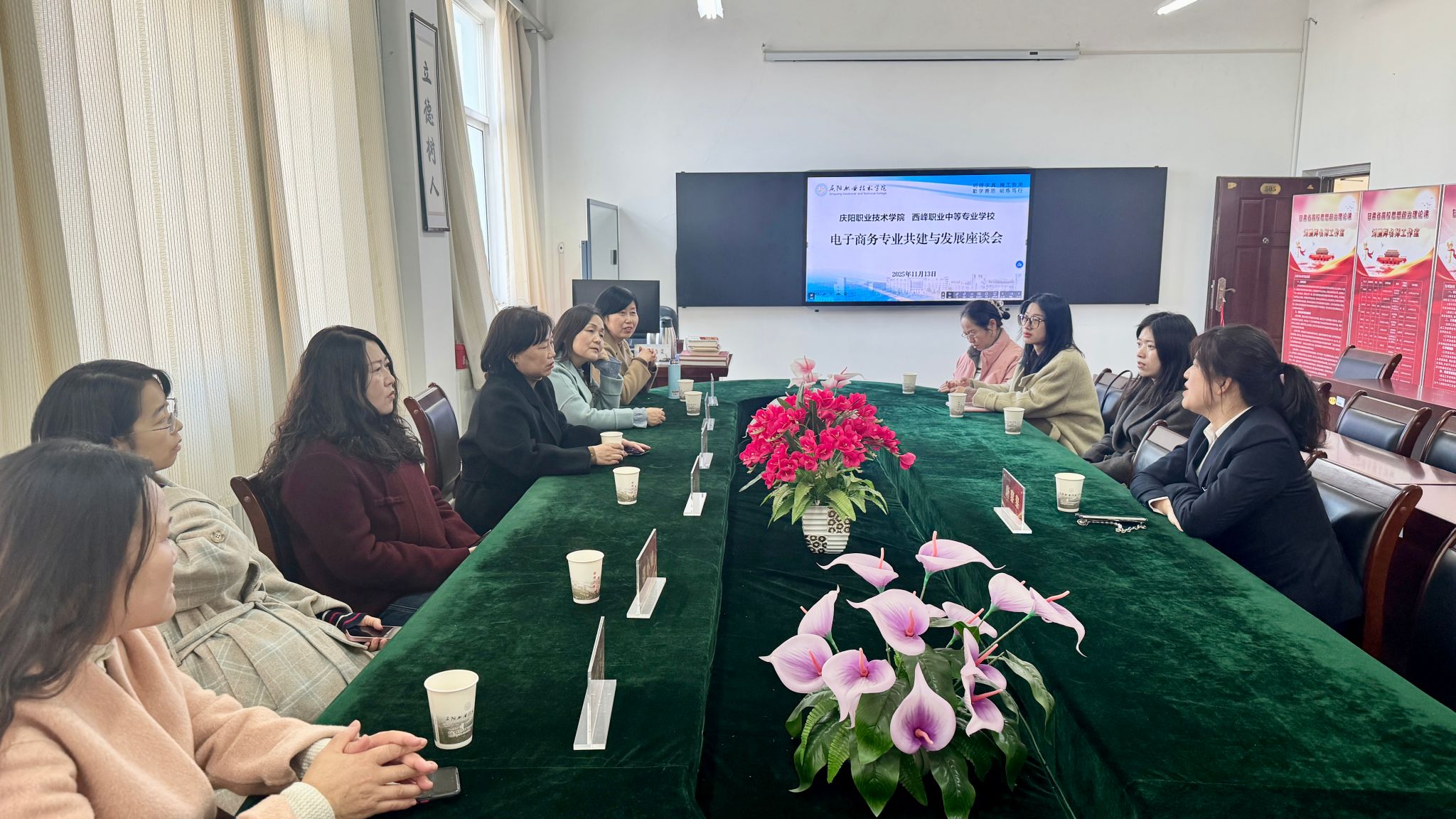 2025 年 11 月 13 日,西峰职业中等专业学校电子商务教研室 6 名教师带领 20 余名学生到我院开展电子商务专业参观交流活动,围绕专业建设先后走访直播电商实训室、非遗直播室、文化交流中心、融媒体中心,并召开专业共建座谈会。
