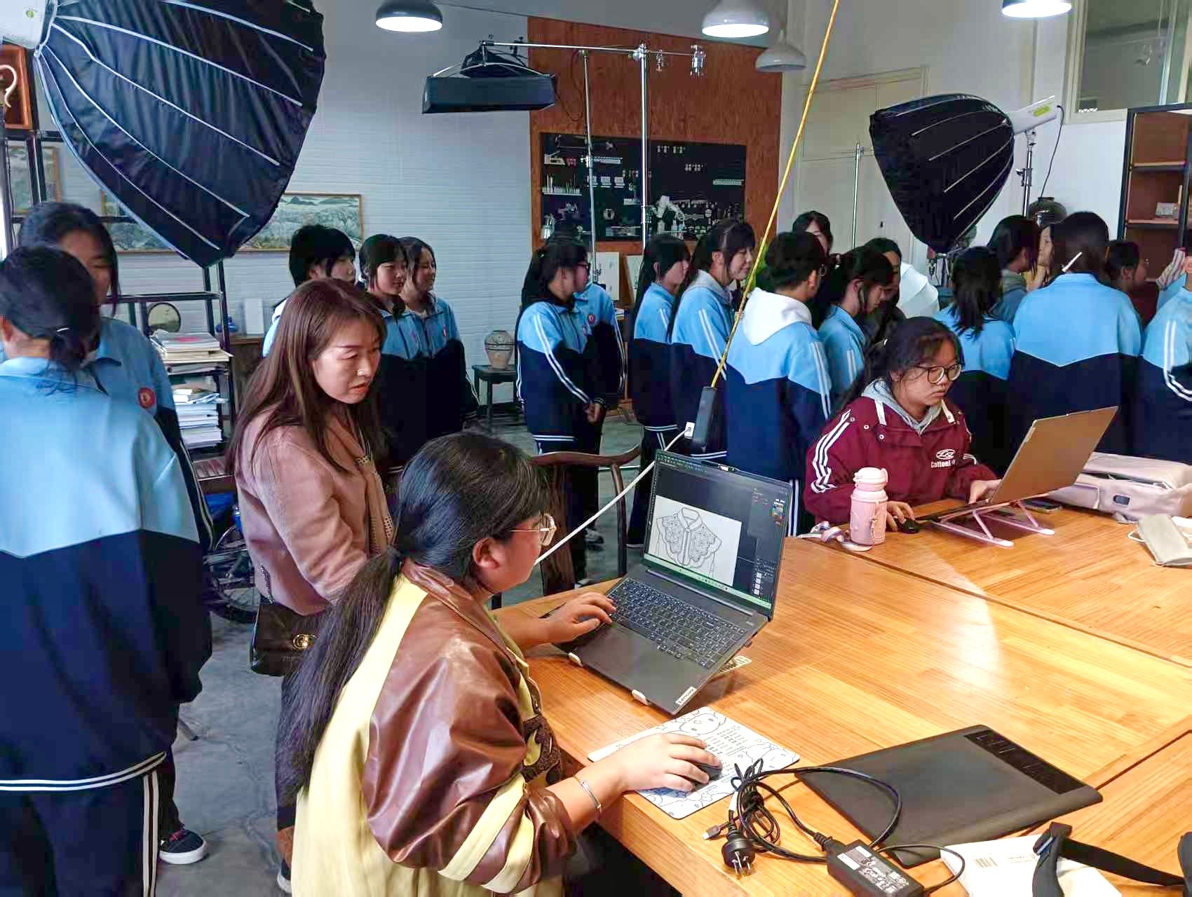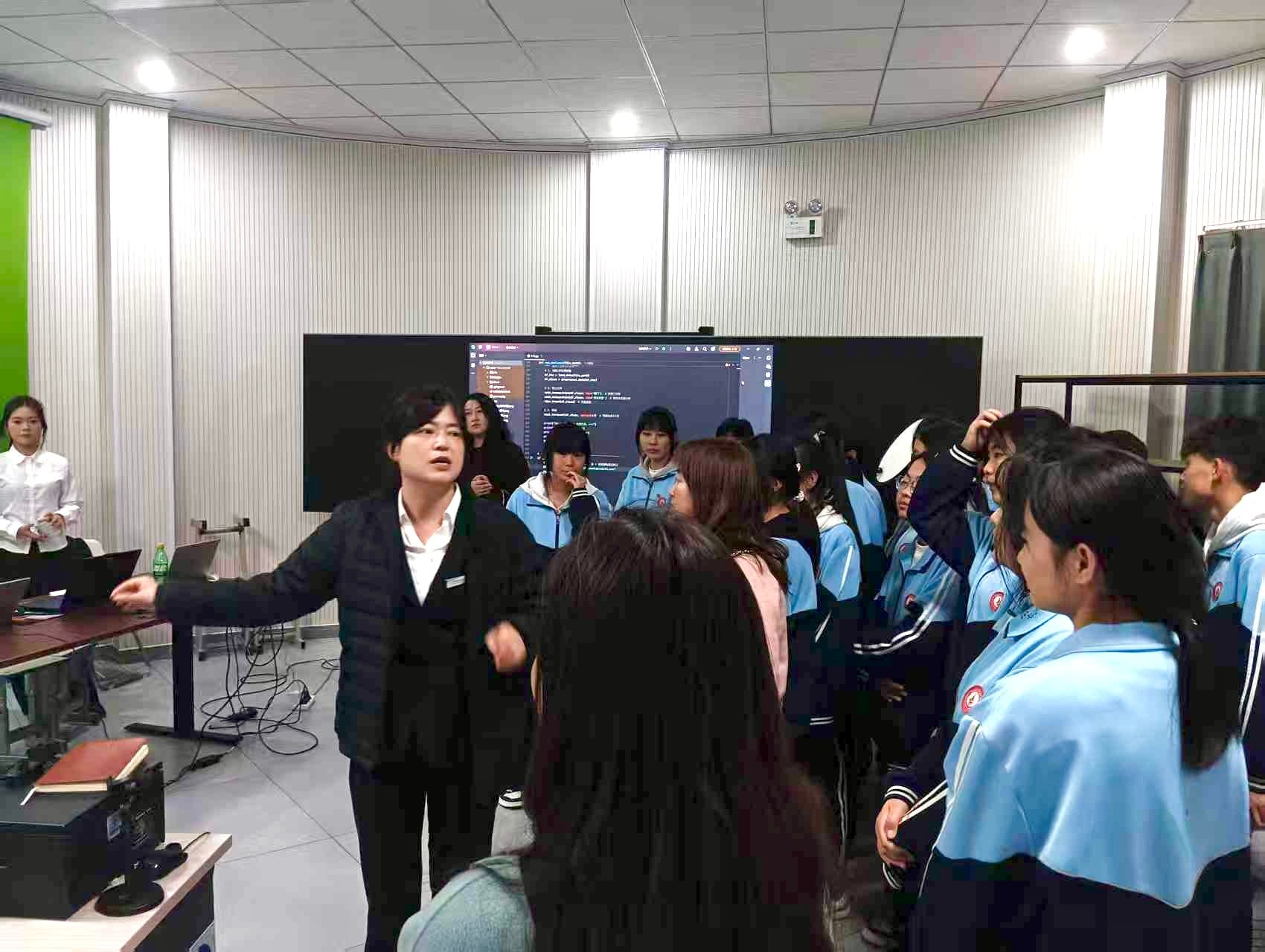 唐黎黎老师全程讲解,带领师生沉浸式感受专业场景:在直播电商实训室,学生们近距离观察电商运营全流程,对直播设备操作、线上营销模式认识不断加强;踏入非遗直播室,传统非遗产品与现代直播场景的融合,让大家直观体会 “电商 + 文化” 的创新路径;在文化交流中心,陈列的文创产品和照片墙记录着专业实践成果,引发学生们的浓厚兴趣;走进融媒体中心,专业的技术设备与工作场景,进一步拓展了他们对电商领域多元发展的认知。学生热情高涨,对电子商务专业的实践应用与发展前景有了更清晰的认知和理解。