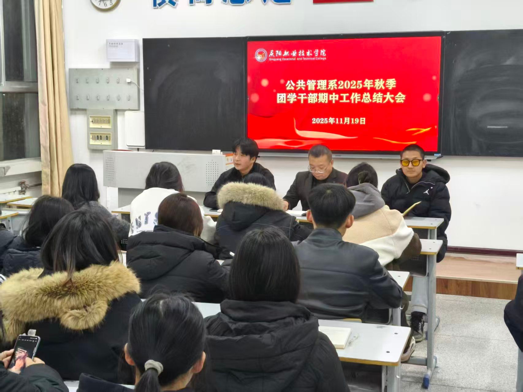 为进一步夯实团学组织力量,优化团学干部工作作风,确保团学工作提质增效,2025年11月19日,公共管理系召开了2025年秋季学期期中团学工作会议,党支部书记帅勇刚到会并提工作要求,学工部干事方骁、学生会主席团成员、各部门负责人、各班团支部书记参加,会议由学生会主席陈吉麟主持。