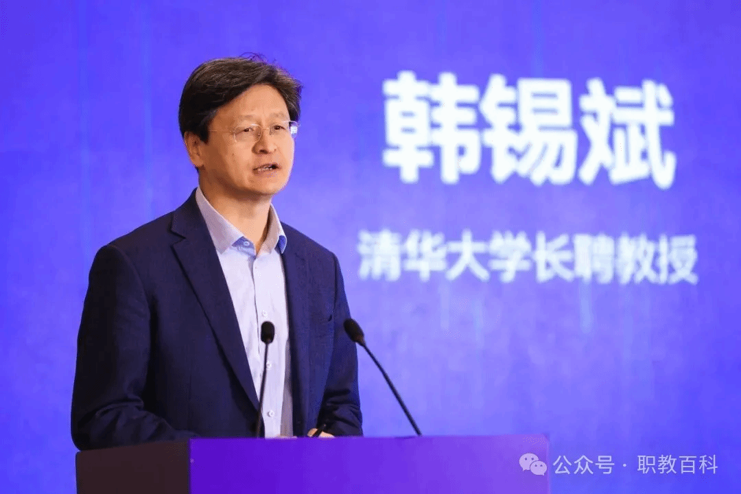 在学术报告环节,清华大学长聘教授韩锡斌作了题为《职教大模型建设与应用的挑战与对策》的深度分享。他指出,当前职教大模型建设正面临语料陈旧、效果存疑与生态分散等诸多挑战,并针对性地系统提出了重构教学模式、夯实证据链条、共建协同生态等一系列破解对策。