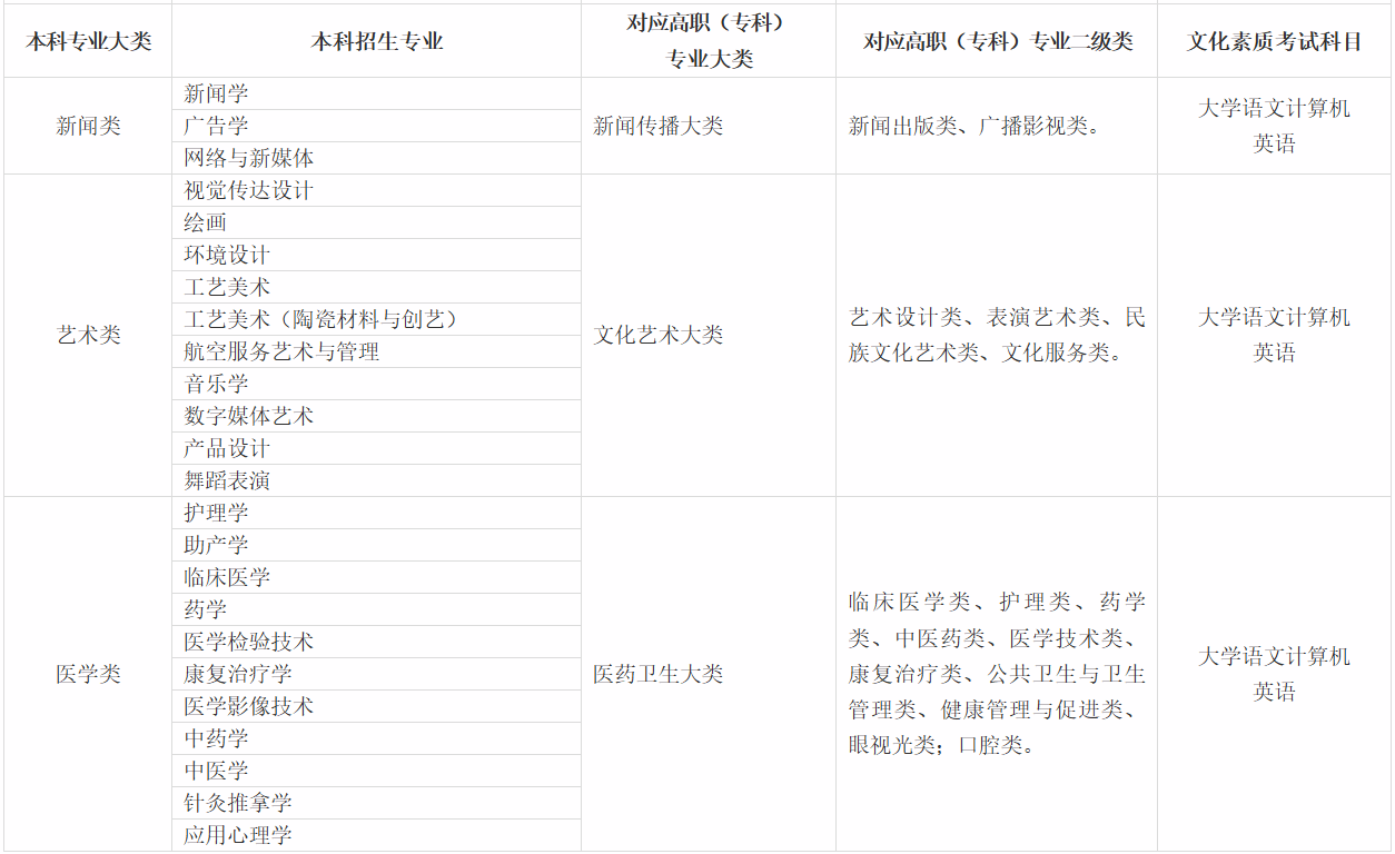 2.报考医学类本科专业时,对高职(专科)专业相同或相近的具体要求: