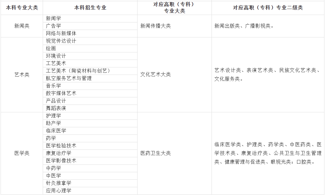 2.报考医学类本科专业时,对高职(专科)专业相同或相近的具体要求: