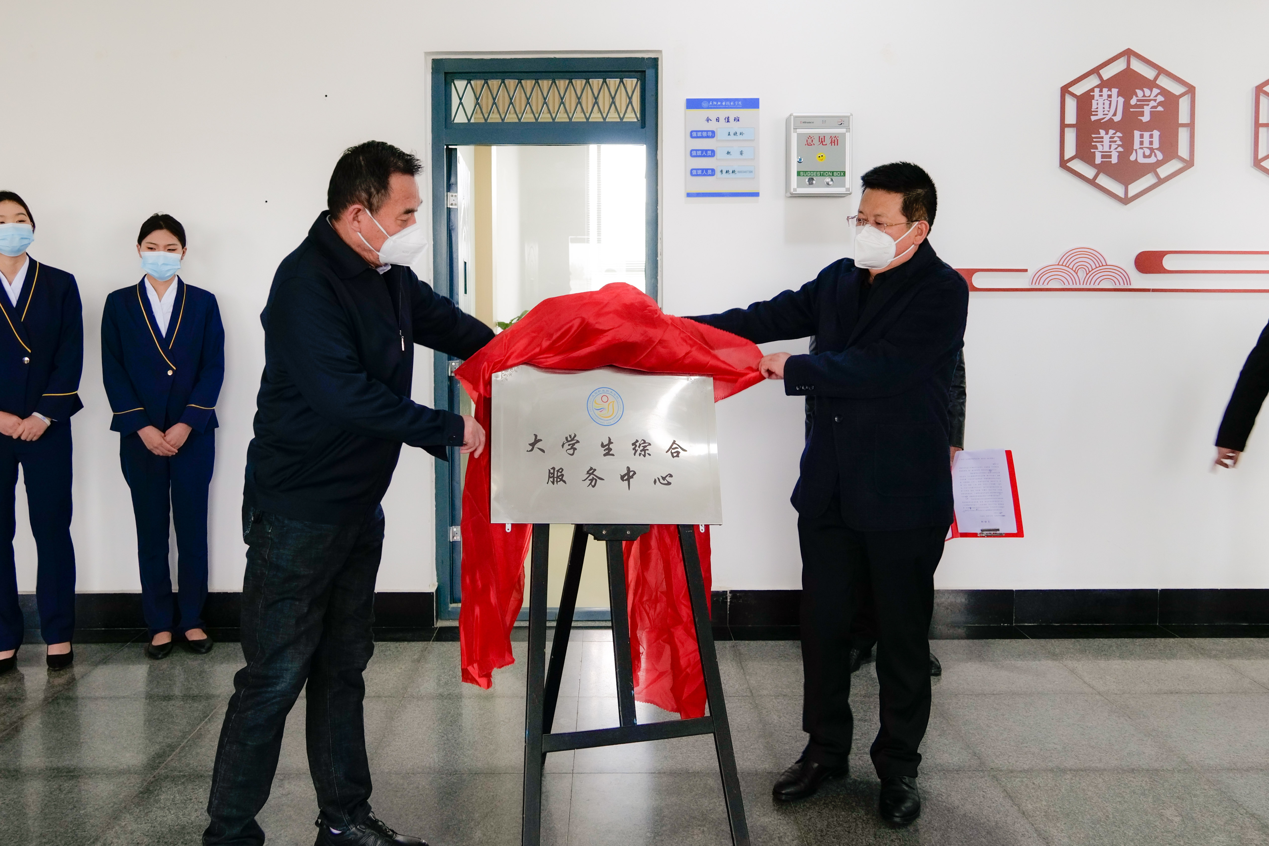 党委副书记胡志玉,党委委员、纪委书记权明敏为大学生综合服务中心揭牌。