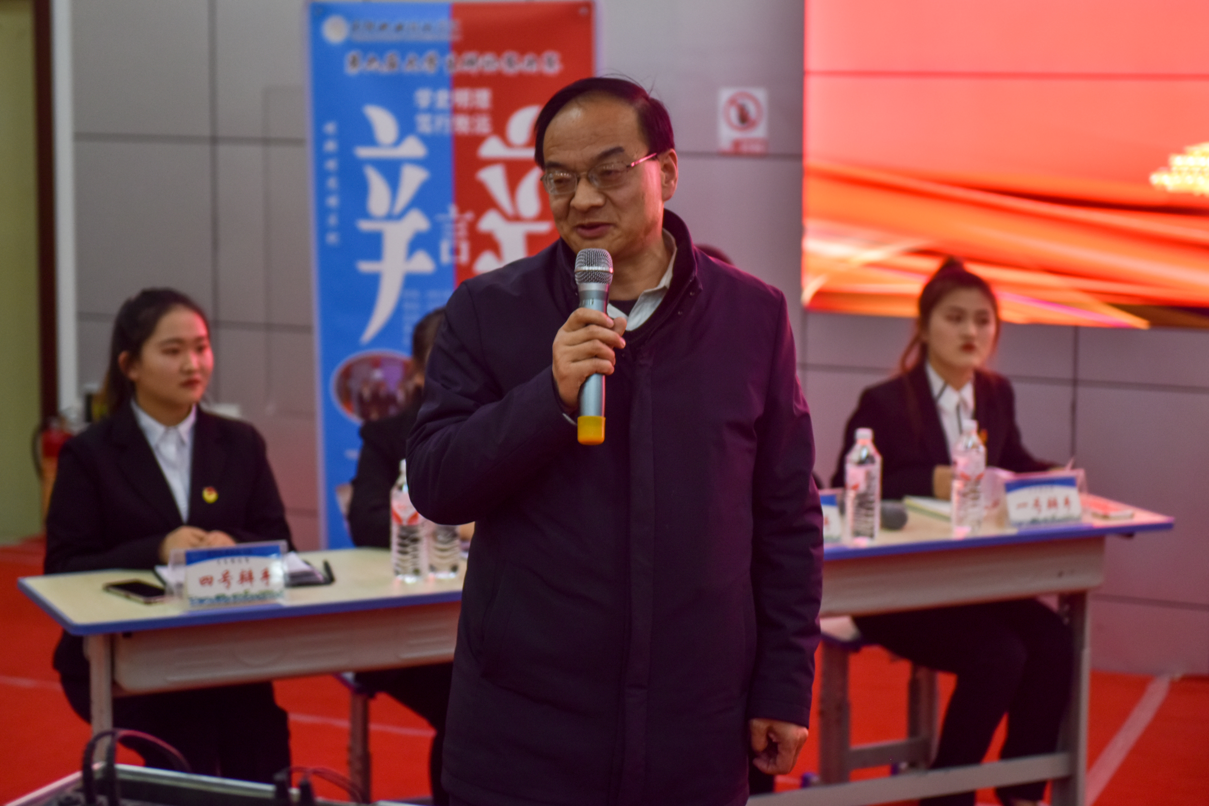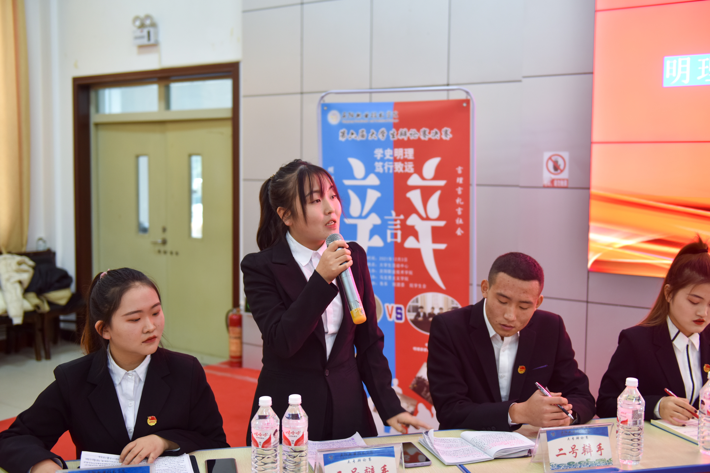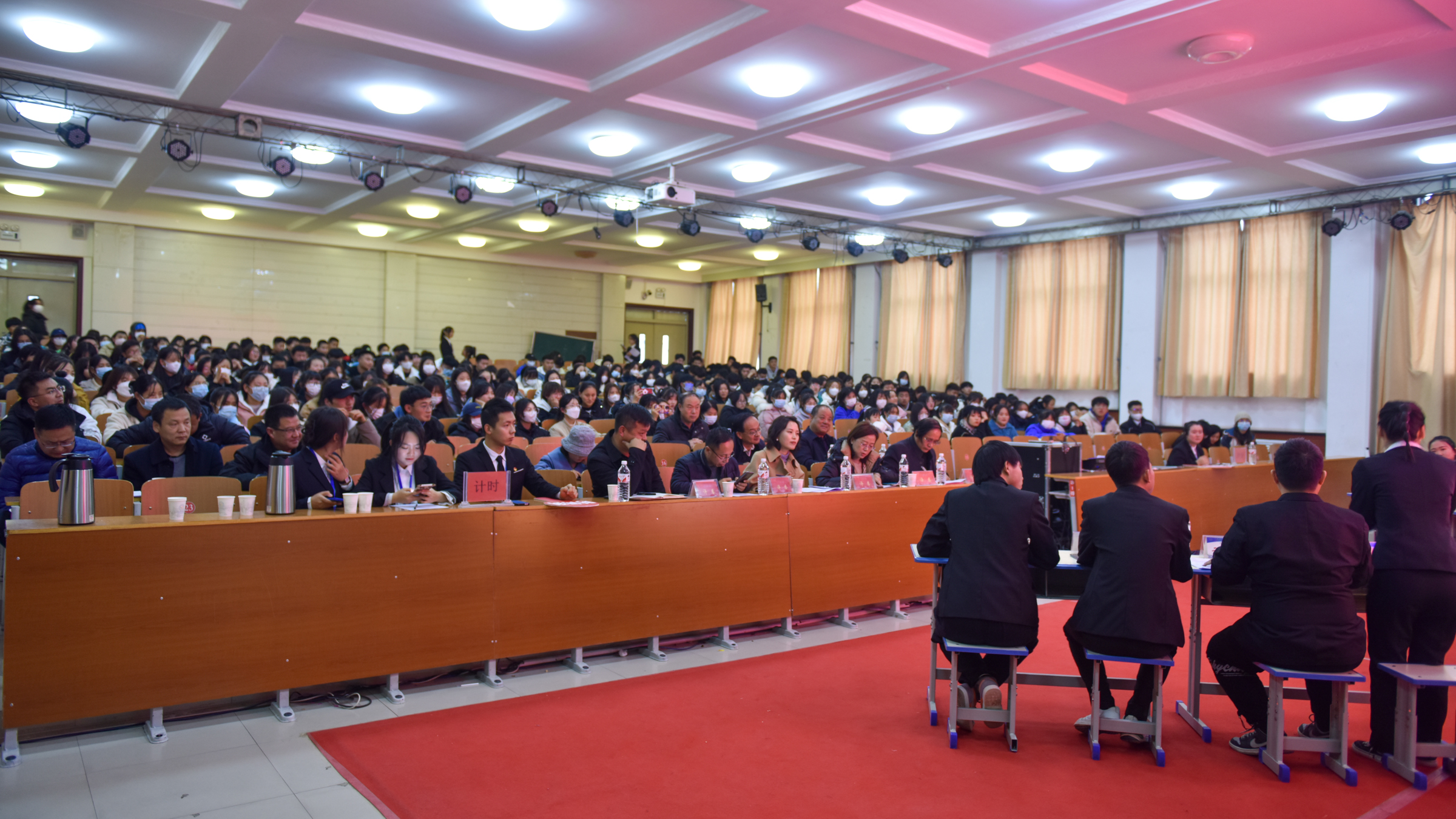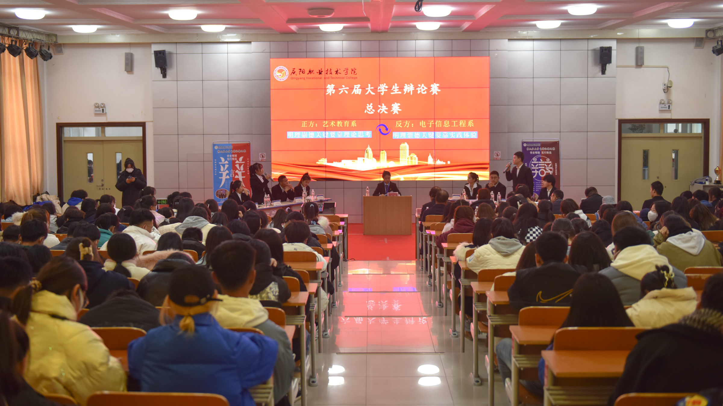 为了庆祝中国共产党成立100周年,积极开展党史学习教育活动,加强素质教育,培养学生的语言表达能力、逻辑思维能力和团队协作意识,庆阳职业技术学院第六届大学生辩论赛于12月7日下午在大学生活动中心举行总决赛暨颁奖典礼。院党委副书记、院长张武德,党委委员、副院长曹强、白旭宁出席,有关处室、系部领导和师生代表参加总决赛暨颁奖典礼。