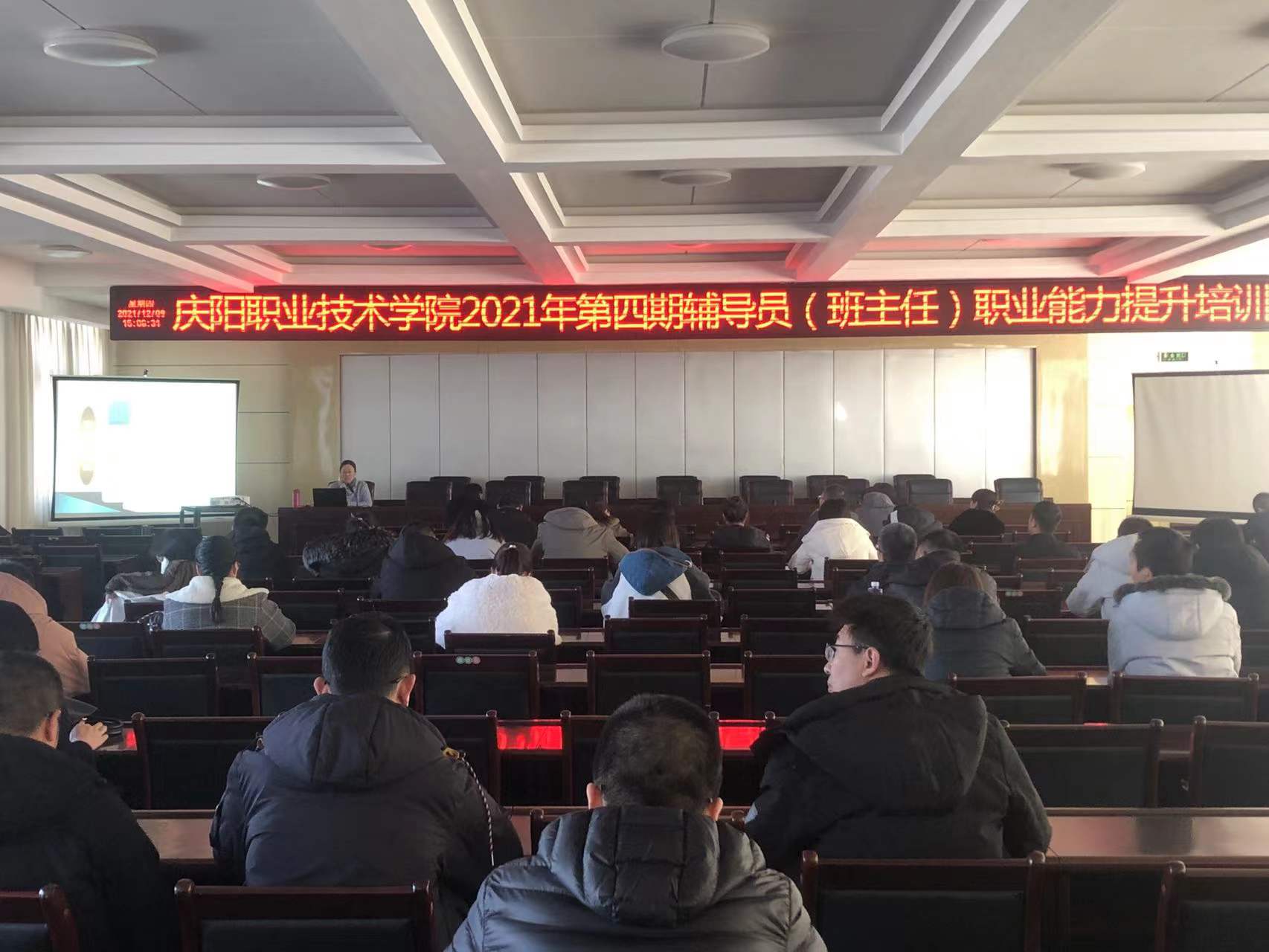 12月9日下午,我院第四期辅导员(班主任)职业能力提升培训在树人楼五楼会议室举行。各系分管学生工作副主任,全体班主任共125人参训。学生工作处处长李永刚主持会议。