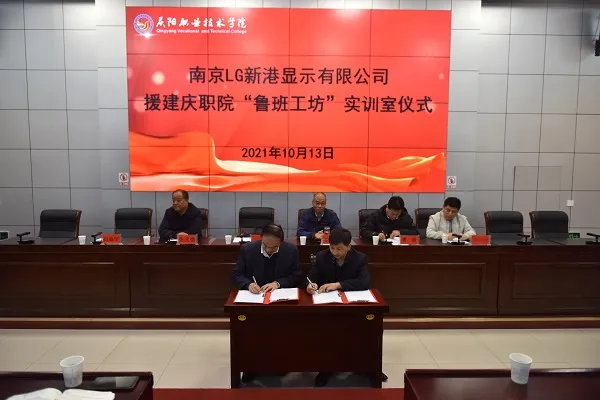 为深入贯彻落实全国职业教育大会精神及习近平总书记关于职业教育的重要指示,推动落实中共中央办公厅、国务院办公厅《关于推动现代职业教育高质量发展的意见》《教育部 甘肃省人民政府整省推进职业教育发展打造“技能甘肃”的意见》,深化产教融合、校企合作,不断完善实践育人体系,强化学生专业技能和通用技术培养、提升创新创业能力,提高人才培养质量。经学院与南京LG新港显示有限公司洽谈,该公司将出资98万元建设学院“鲁班工坊”实训室。10月13日上午,在学院多媒体报告厅举行了签约仪式。南京LG新港显示有限公司校企合作办张华宝经理,校企合作办经理助理焦广华,学院在家领导出席。各相关部门负责人,电子信息工程系与机械工程系师生共200余人参加签约仪式。仪式由学院副院长曹强主持。