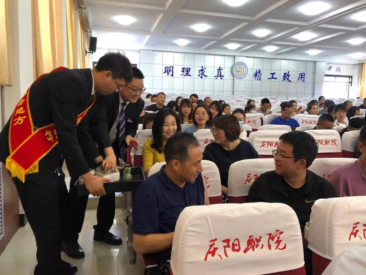 学院党委委员、副院长白旭宁代表学院讲话,他向甘肃银行庆阳分行营业部长期以来对学院的关心和支持表示感谢!向安玉龙老师的精彩讲座表示感谢!他强调了礼仪对教师的重要性,向全体教师提出两点希望:一是希望全体老师充分认识教师职业的特殊重要性,按照习近平总书记关于新时代“四有”好老师的要求,塑造良好的职业形象,展示自己的人格魅力,维护教师的职业尊严,严格遵守教师礼仪,内强素质,外树形象,做知书达礼的教师,育崇文尚武的学生;二是希望全体老师进一步增强搞好职教工作的信心,坚守立德树人的初心,加强专业知识学习和技能培养,强化责任担当,善待同事,热爱学生,在平凡的教师岗位上取得不平凡的业绩。白旭宁代表学院向全体老师的辛勤工作、无私奉献表示感谢!衷心祝愿各位同仁节日快乐,工作顺利,事业成功,家庭幸福!祝愿各位老师桃李遍天下,春晖遍四方!