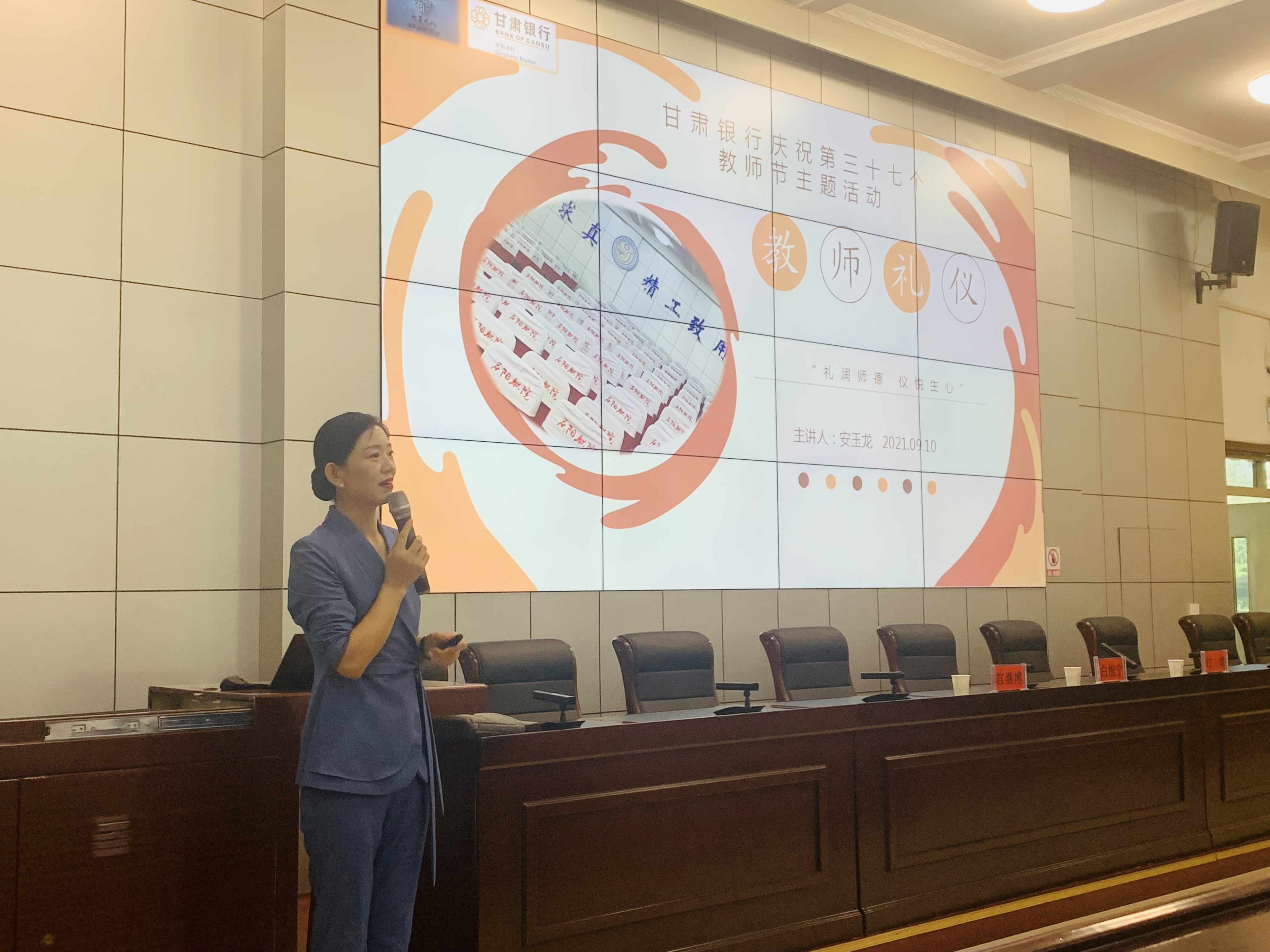 9月10日上午,在第37个教师节之际,学院在多功能报告厅举行以“礼润师德 仪悦生心”为主题的教师礼仪培训讲座。学院在家领导班子成员,全体教师、甘肃银行庆阳分行营业部负责人共200余人参加。培训讲座由党委委员、副院长白旭宁主持。