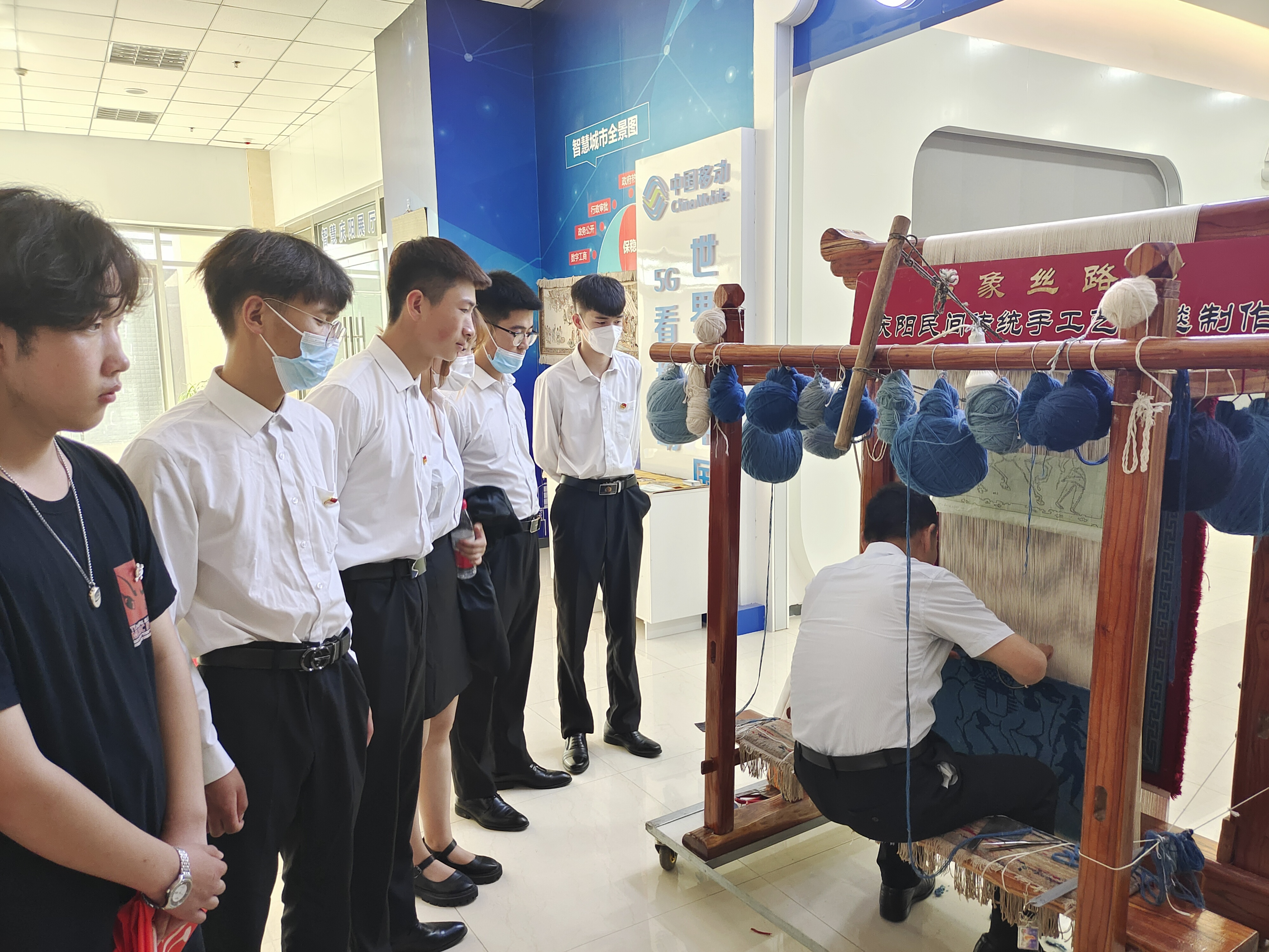 手工地毯的编织现场和朴拙的石雕展台,满足了同学们的好奇心;小巧玲珑的面塑,全景展示了过往充满了浓郁的烟火味与泥土气息的农村生活图景,使同学们接受了古老的农耕文化的洗礼。