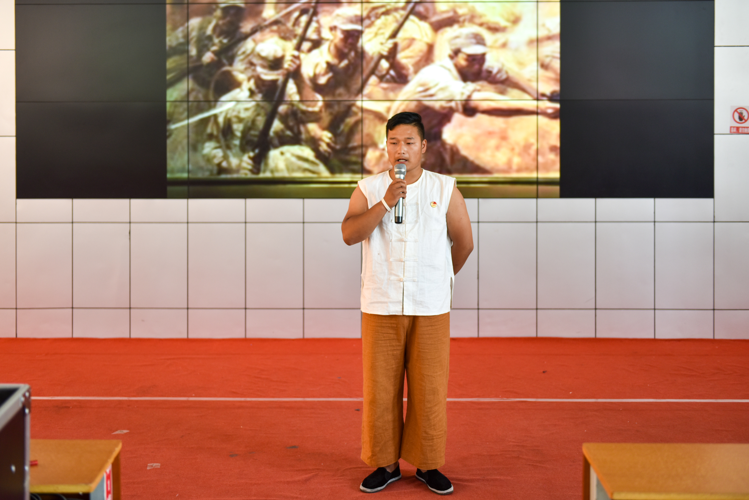 宣讲大赛在2020级学前教育14班黎永杰的《人民万岁》中拉开序幕,随后《红色的七月,希望的党》《浴血播火 大义凛然——王孝锡》《鲜血洒在革命路上——巾帼英雄吕楚卿》《面对刑具毫不惧色的江姐》等一个个红色故事在宣讲者深情的叙述中娓娓道来,讲述着革命先驱和共产党员的感人故事,讴歌他们的不朽功绩,学习他们的崇高精神。倾情地讲述引发现场观众的强烈共鸣,动情之处不禁潸然泪下。先烈们为了崇高信仰抛家舍业、英勇无畏,为了新中国冲锋陷阵、血洒疆场的革命精神让现场观众深受震撼。
