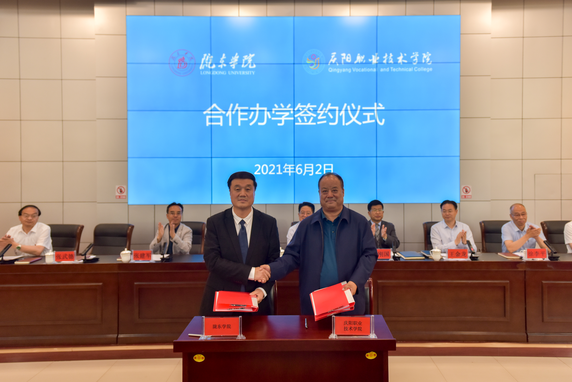 市委常委、宣传部长闫晓峰指出,陇东学院和庆阳职业技术学院合作办学,是认真贯彻习近平总书记关于办好高等教育、职业教育重要指示和全国、全省、全市教育大会精神的实际行动,是深入落实“技能甘肃”“技能庆阳”行动的有力举措,必将为庆阳高等教育事业发展注入新的强大动力,对促进庆阳职业技术学院提质培优,助推我市经济社会高质量发展将产生重要而深远的影响。他强调,希望两校聚焦全市经济社会发展前沿,在学科建设、人才培育等方面互学互鉴,努力构建互联互通的高等教育体系,实现中职、高职、本科教育纵向培养,不断提升服务地方经济社会发展的能力和水平,为建设幸福美好新庆阳提供强力的人才支撑。