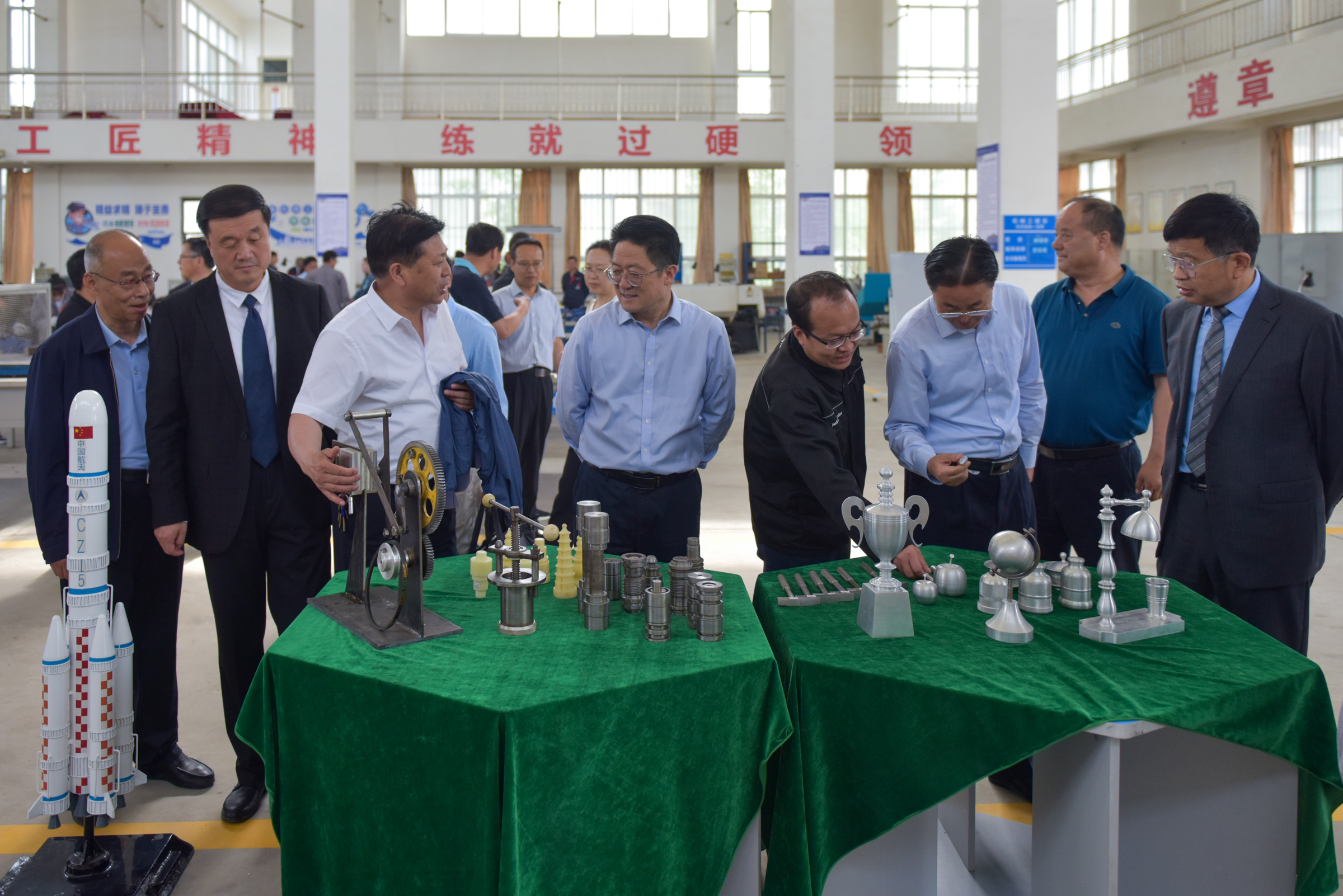 签约仪式前,与会领导一行深入校史馆、知行楼、鲁班工坊、尚能楼和尚技楼,实地参观了创新创业工作室和加工实训车间,就人才培养、专业建设、产教融合、校企合作进行了调研。