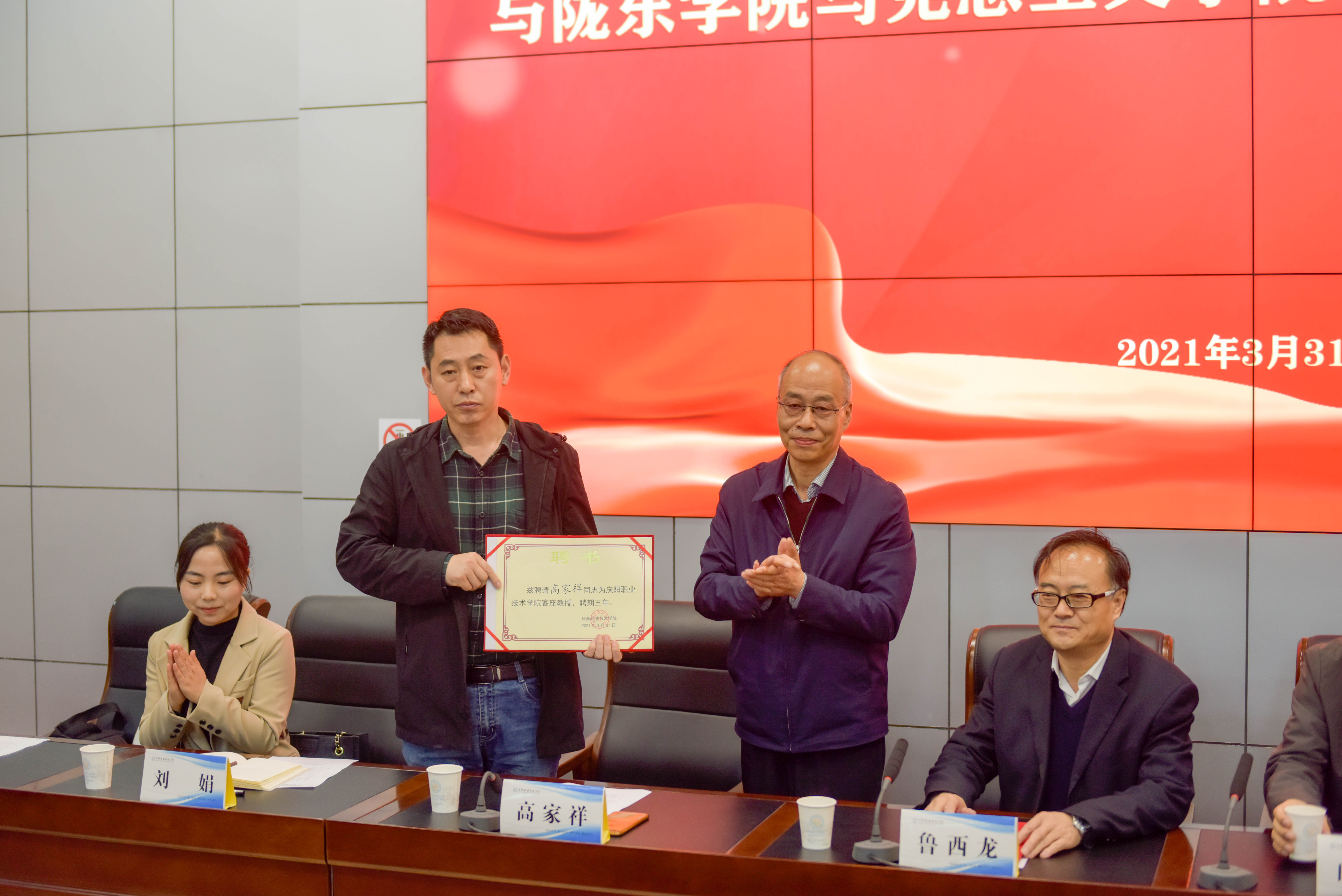 党委书记徐李平为曲涛教授、鲁西龙教授、高家祥副教授颁发客座教授聘任书。