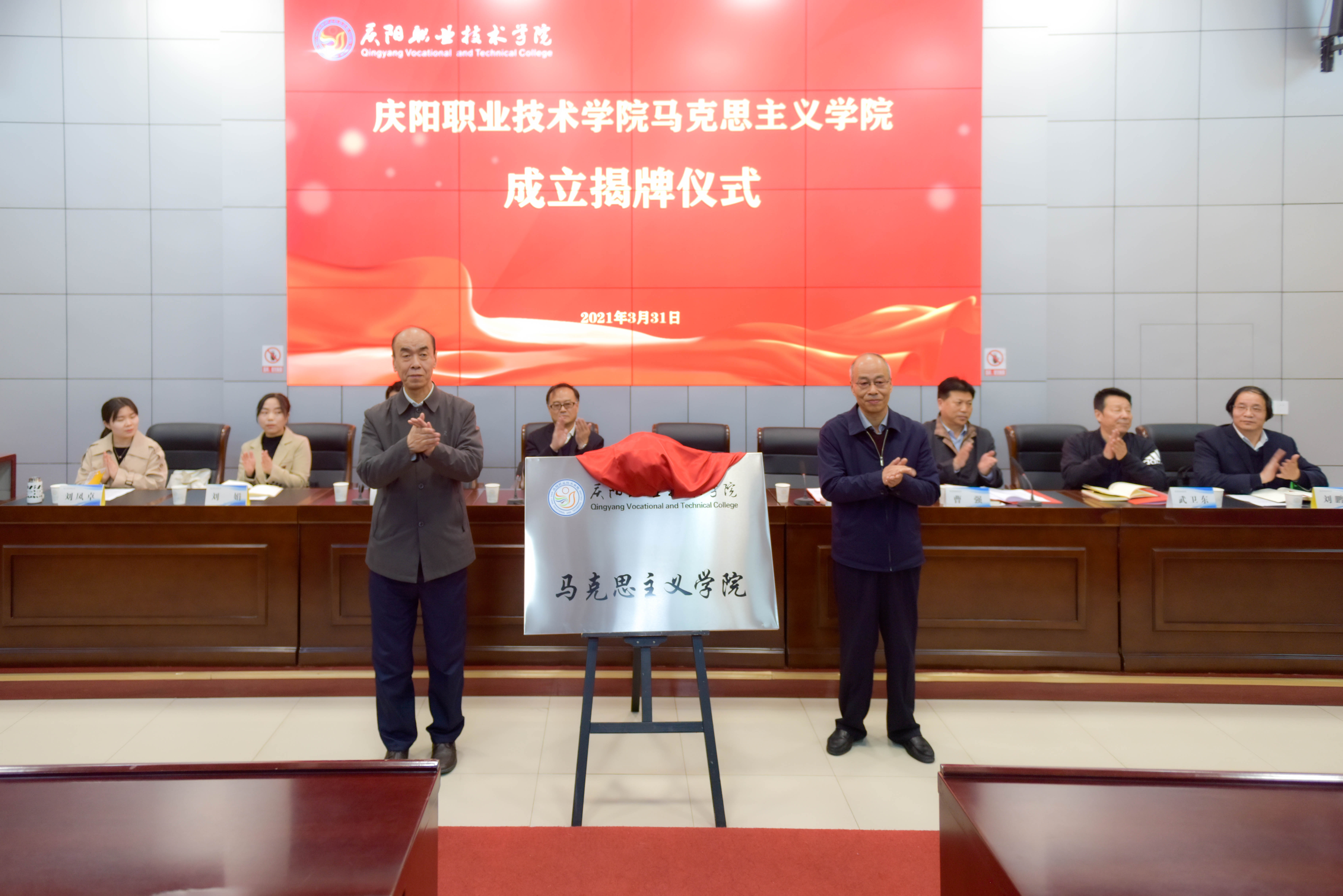 3月31日下午,庆阳职业技术学院隆重举行马克思主义学院成立揭牌仪式。陕甘边根据地研究中心主任、原陇东学院经管学院院长、教授曲涛,陇东学院马克思主义学院院长、教授鲁西龙,陇东学院马克思主义学院副院长、副教授高家祥,陇东学院马克思主义学院教师刘娟以及我院在家班子成员、全体教职工、学生入党积极分子参加仪式。院党委委员、副院长曹强同志主持仪式。