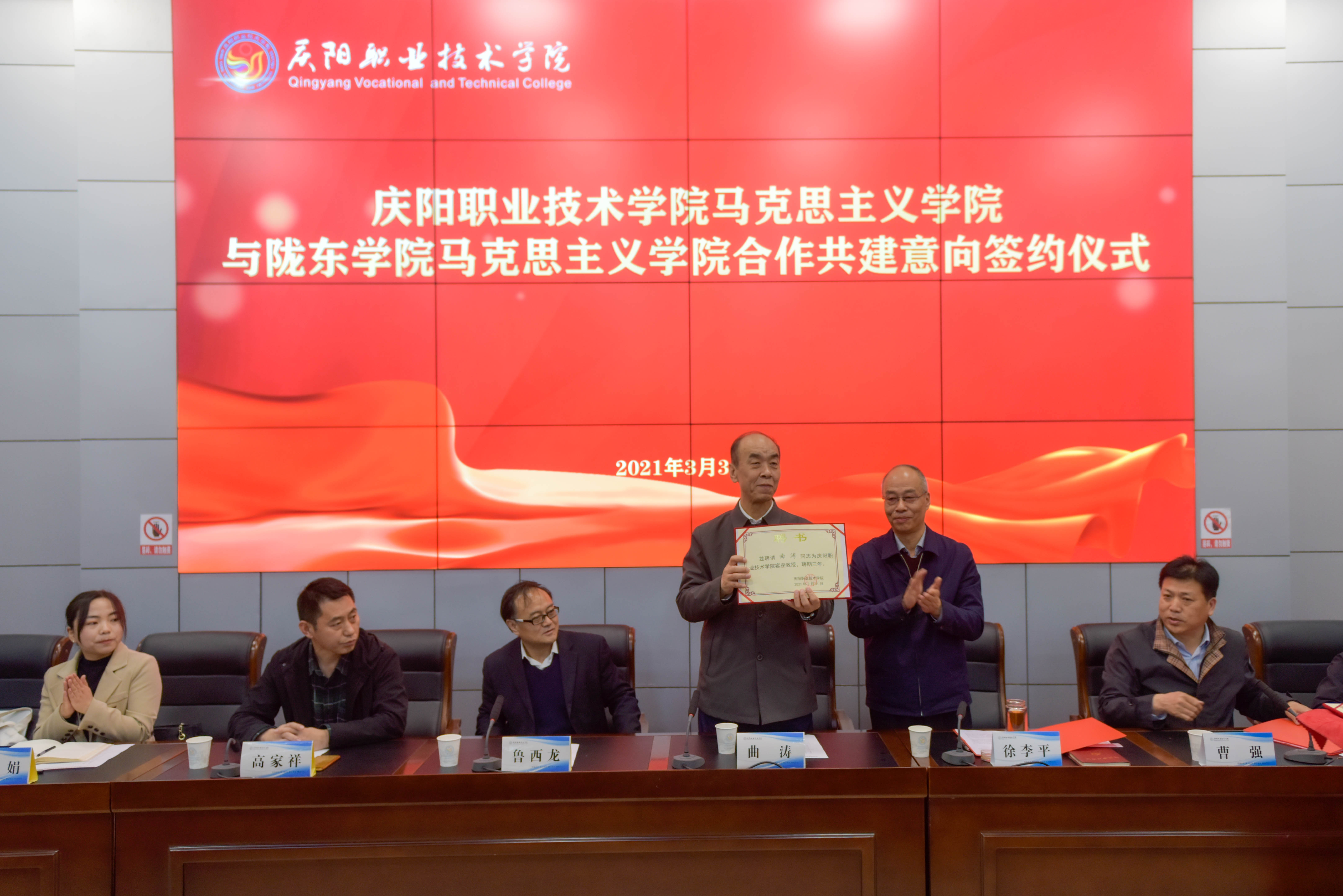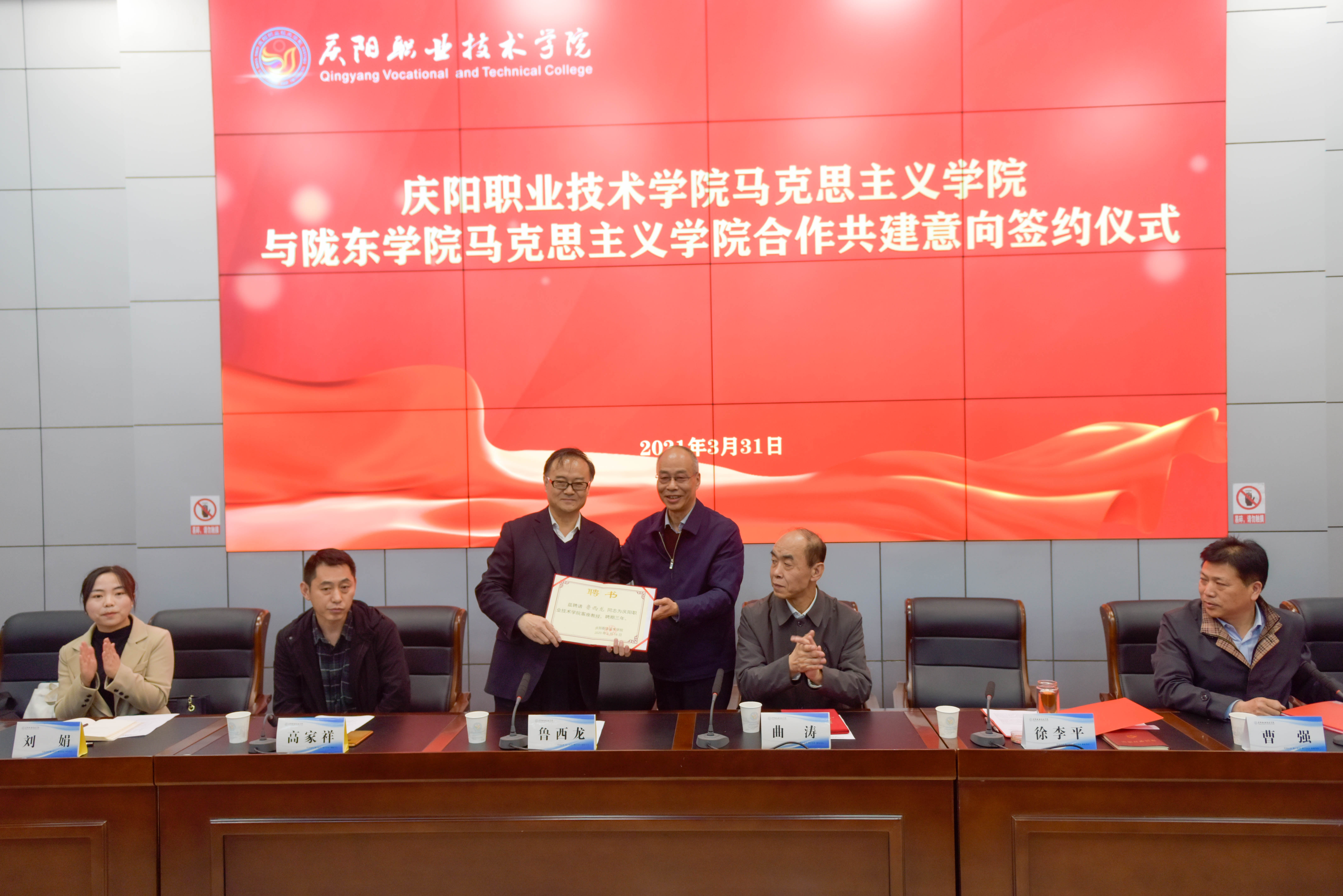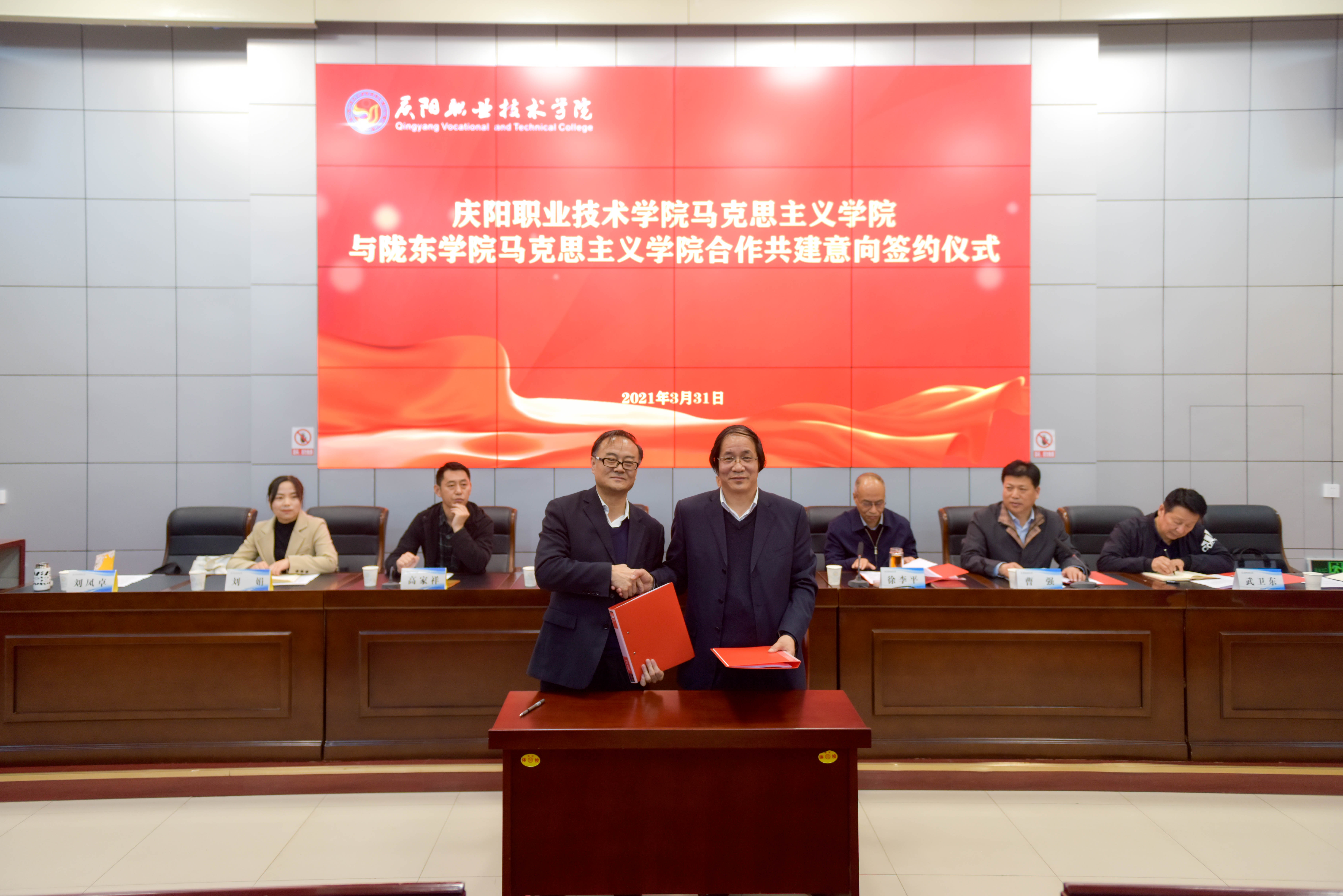 鲁西龙院长与我院马克思主义学院院长刘鹏辉签订《庆阳职业技术学院马克思主义学院与陇东学院学院马克思主义学院合作共建协议意向书》。