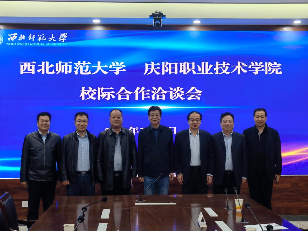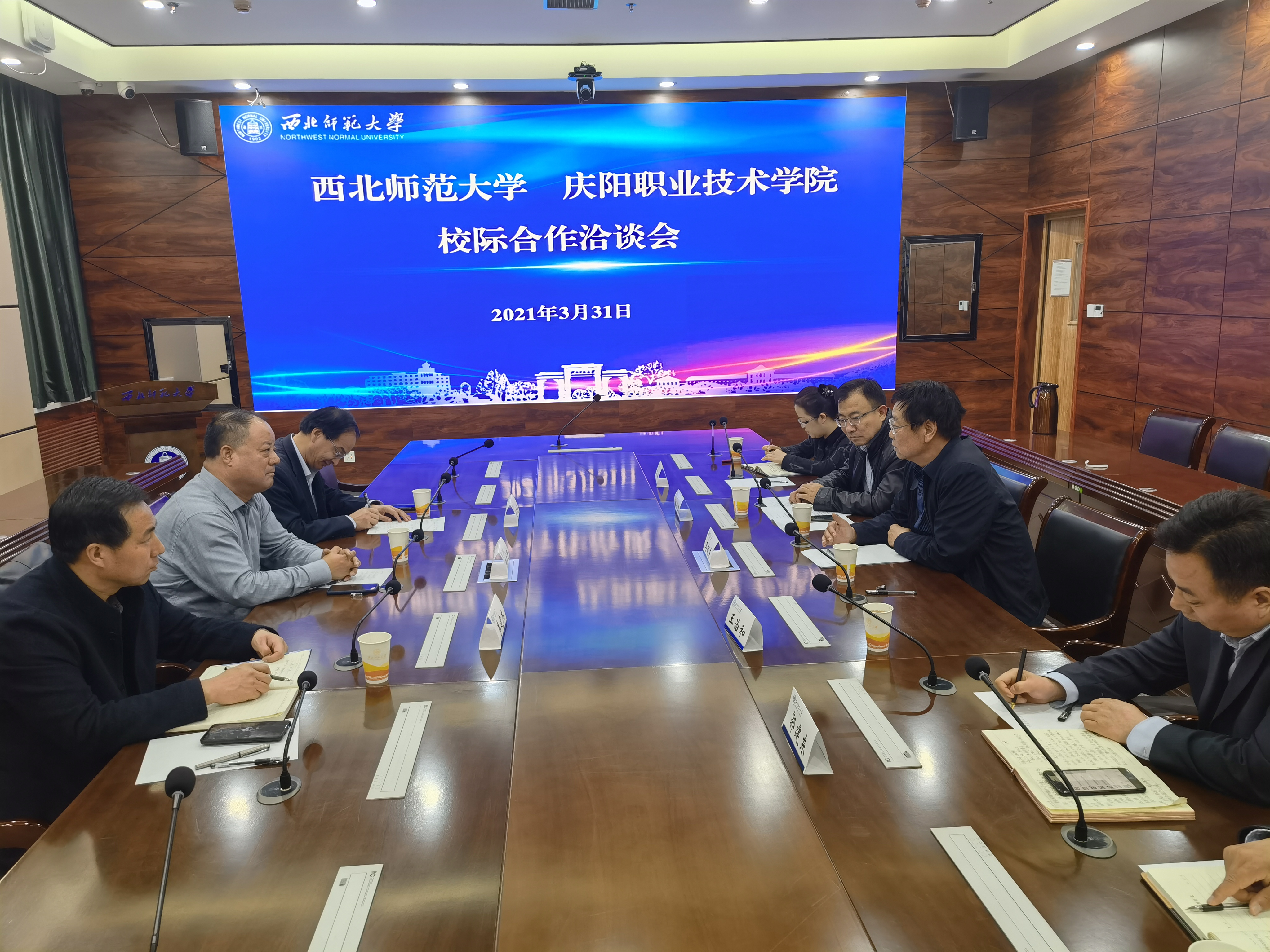 3月31日上午,张武德一行与西北师范大学副校长李朝东、社会服务合作处处长杨纳名、教务处处长王治和、招生就业处处长郭建东、校办主任龙琳等同志座谈交流。张武德介绍了学院情况,提出合作意向及寻求支持帮扶的重点。李朝东介绍了西北师大办学情况,表示西北师大有责任、有义务支持老区职教提质培优,共同推动甘肃教育的发展。他在听取了解合作内容之后,当即表态可以实施青年教师能力提升的定制培训,并要求双方进一步加强沟通,拓宽合作范围,提出合作框架方案,上会后落实。与会代表就开展师资能力提升培训、学前教育、能源化工专业3+2贯通培养等工作交换意见,表示将寻求政策支持,联手共同发展。座谈会之后,张武德一行参观了西北师大博物馆,对该校的办学经验、办学精神、学校文化底蕴有了全面深刻的了解。