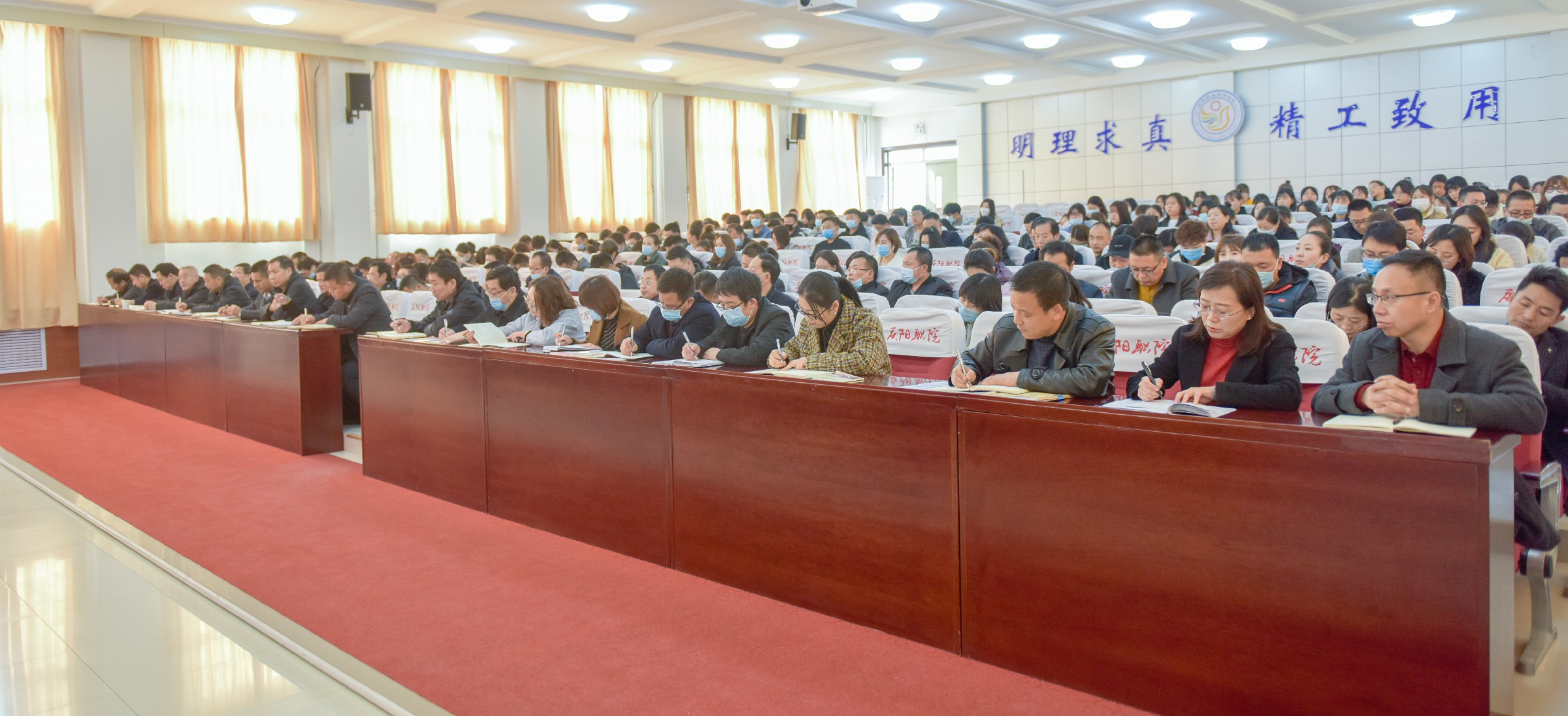 3月12日,庆阳职业技术学院召开党史学习教育动员大会,进一步深入学习贯彻习近平总书记在党史学习教育动员大会上的重要讲话精神,统一思想、明确任务,对开展党史学习教育进行再动员、再部署、再推进,推动党史学习教育深入人心、取得更大实效。在家党委委员、全体中层干部、党员同志、教研室主任、系办公室主任、处室系部干事、入党积极分子和团学干部400余人参会。院党委副书记、院长张武德主持。