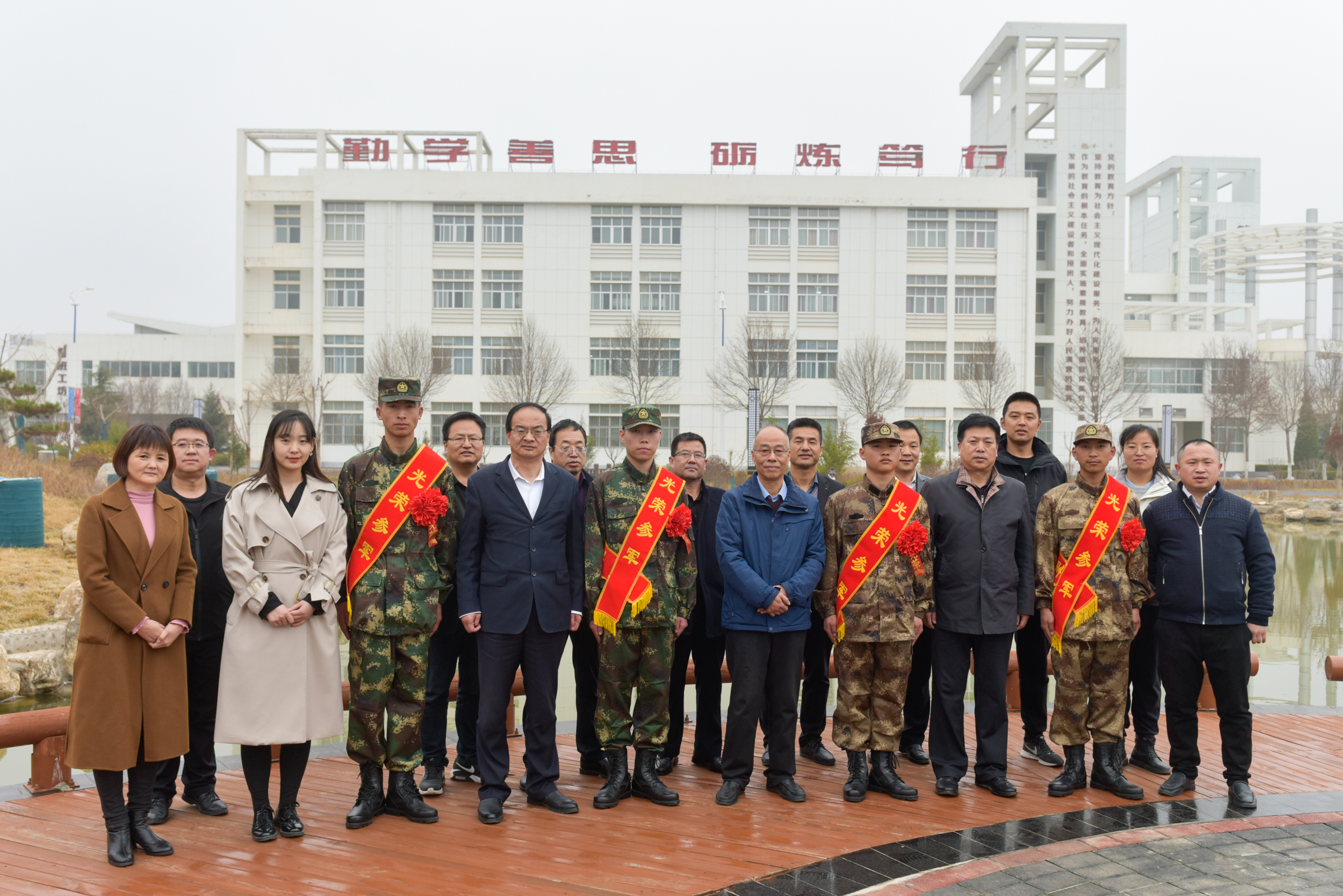 学院领导、相关系主任、班主任与入伍新兵合影留念。