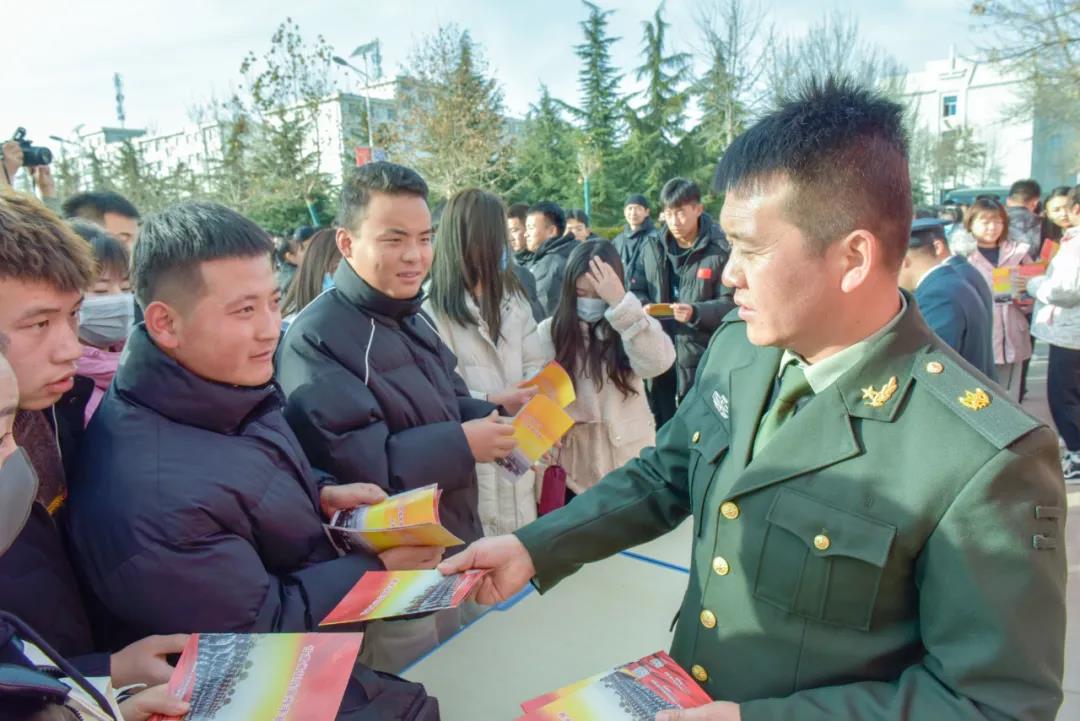 会后,学院征兵办工作人员会同区人武部的官兵向广大师生做了入伍政策咨询宣传。