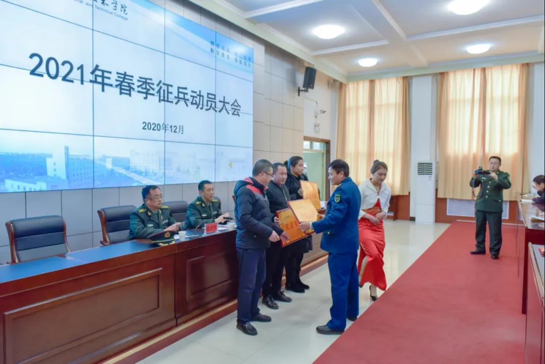 大会在雄壮的国歌声中拉开帷幕,学院征兵办主任、学生工作处处长李永刚宣读了《2020年征兵工作先进集体和个人表彰奖励决定》,2020级学生王动代表退役士兵分享了个人军营成长体验,李顺庭副司令为征兵工作先进集体代表颁发了奖牌。
