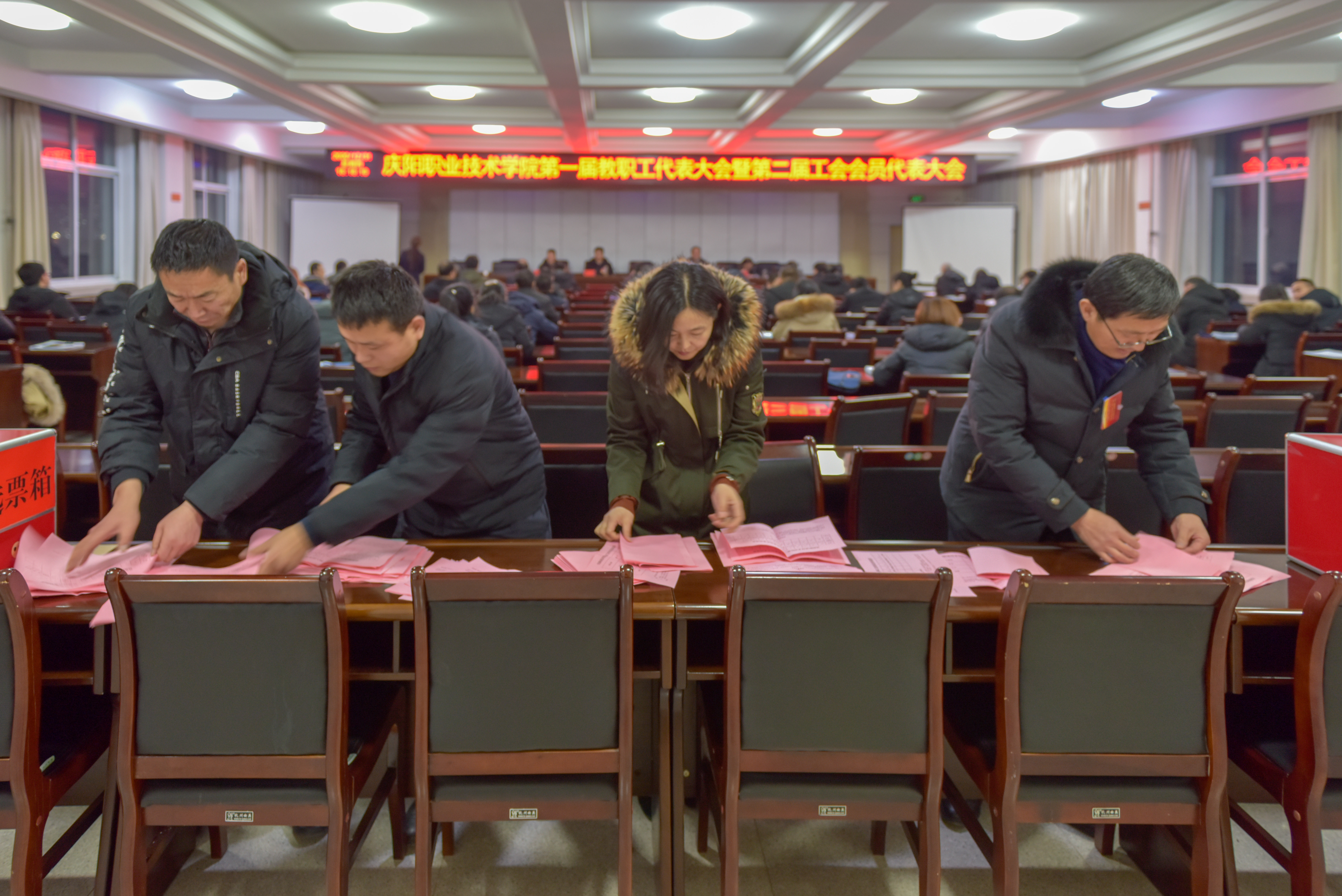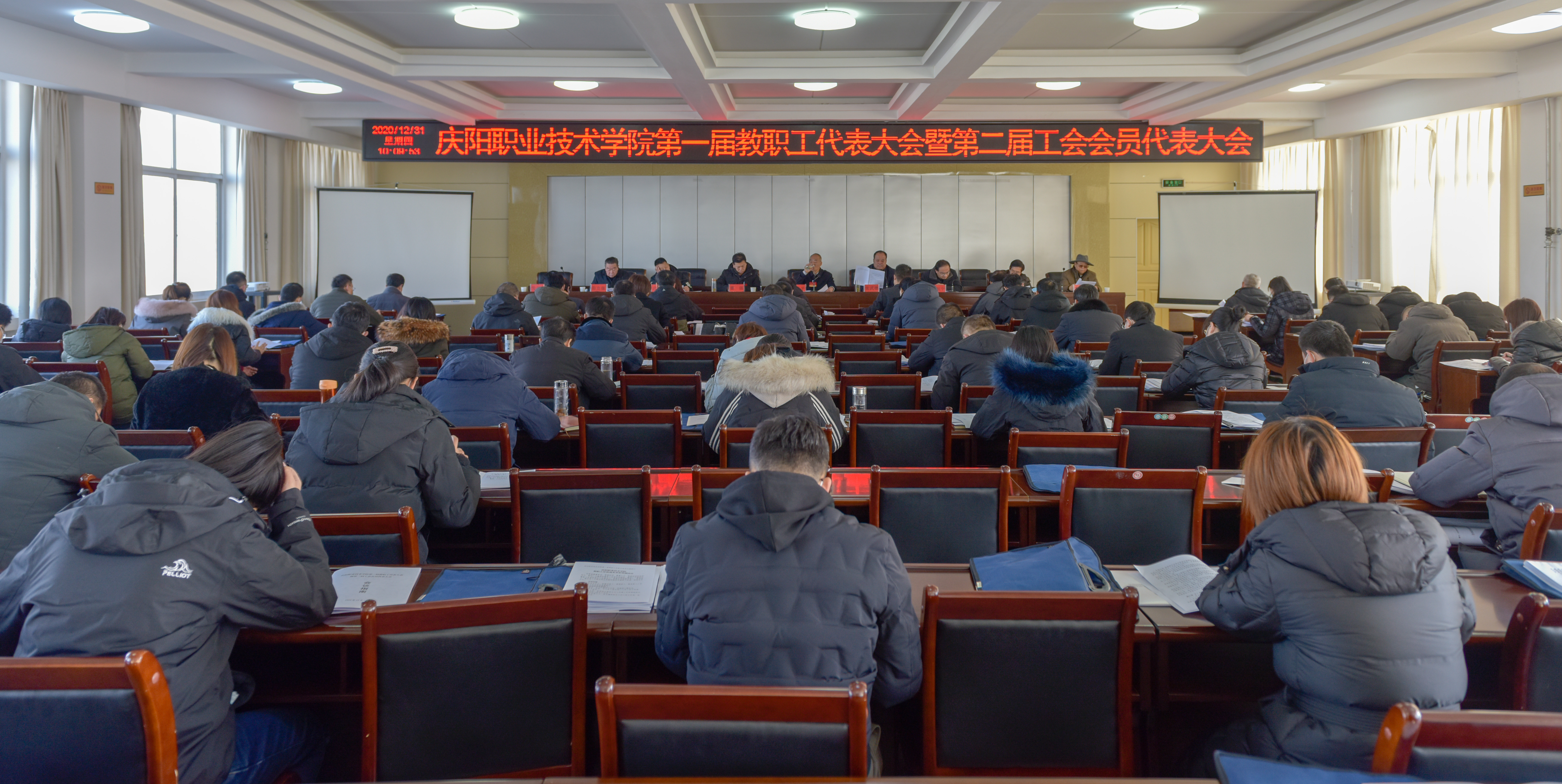 12月30日-31日,庆阳职业技术学院第一届教职工代表大会暨第二届工会会员代表大会在树人楼会议室隆重召开。民主选举产生的、由一线教师、中层干部、工勤人员组成的80名正式代表、6名列席代表和特邀的3名离退休职工代表聚集一堂,集思广益,建言献策,共谋学院改革发展大计。
