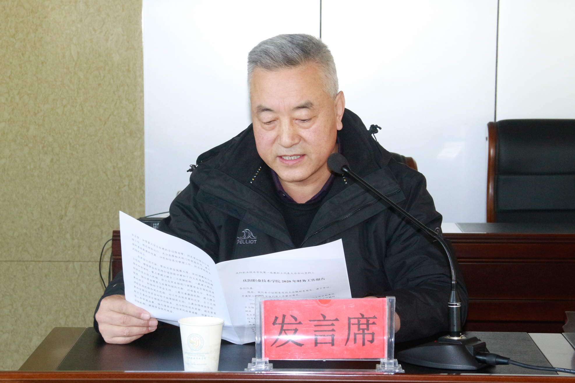 计划财务处处长杜旭东同志作《学院财务工作报告》。