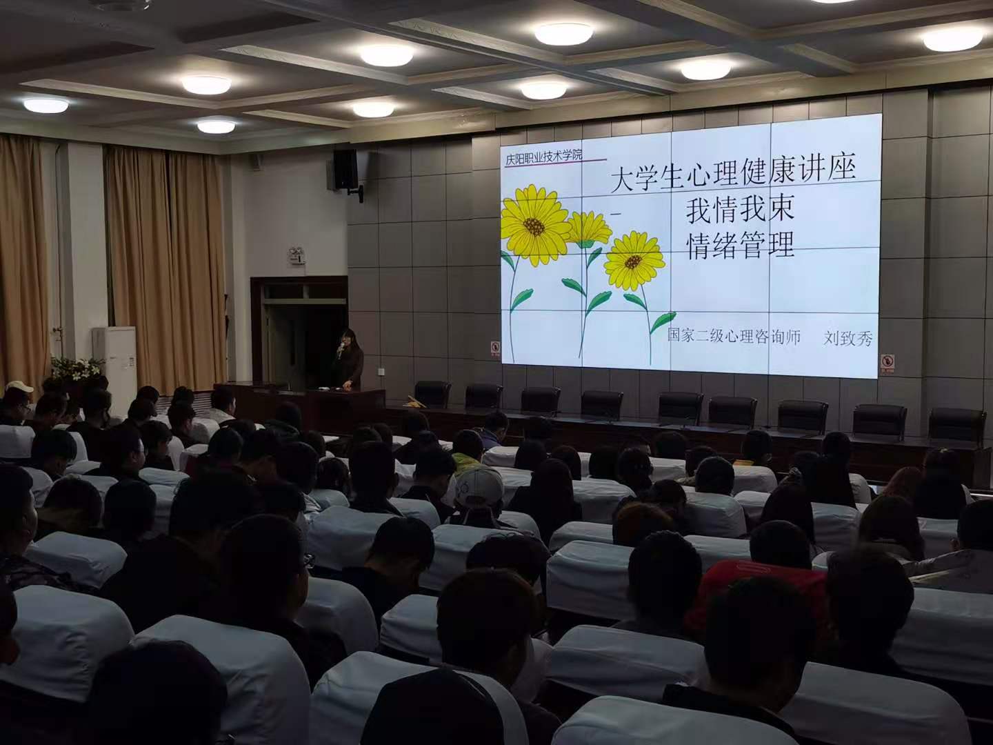为全面提高学生的心理素质,加强对自身的情绪管理与调适,11月18日下午,学院邀请国家二级心理咨询师刘致秀老师以“我情我束,情绪管理”为主题,分四场面向2000余名学生进行了大学生心理健康教育讲座。