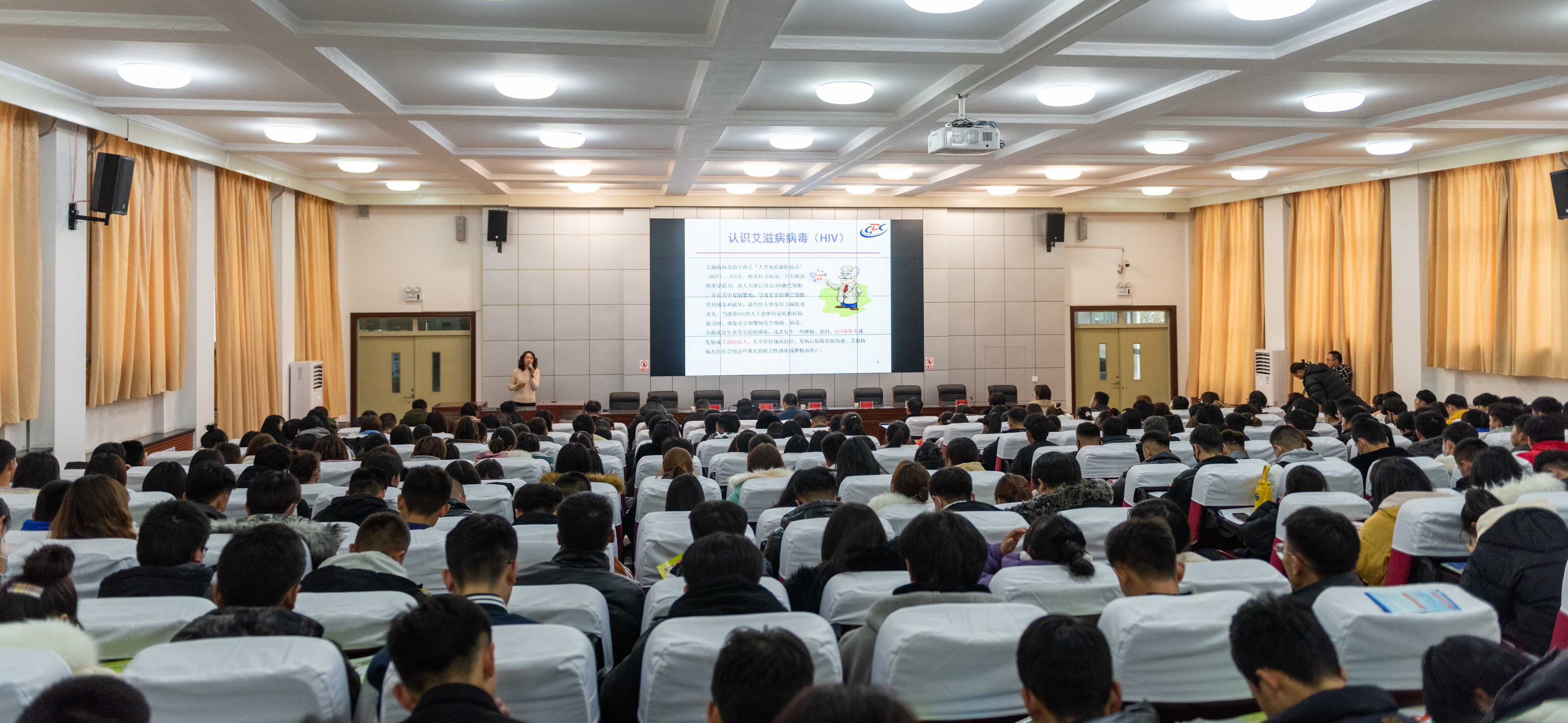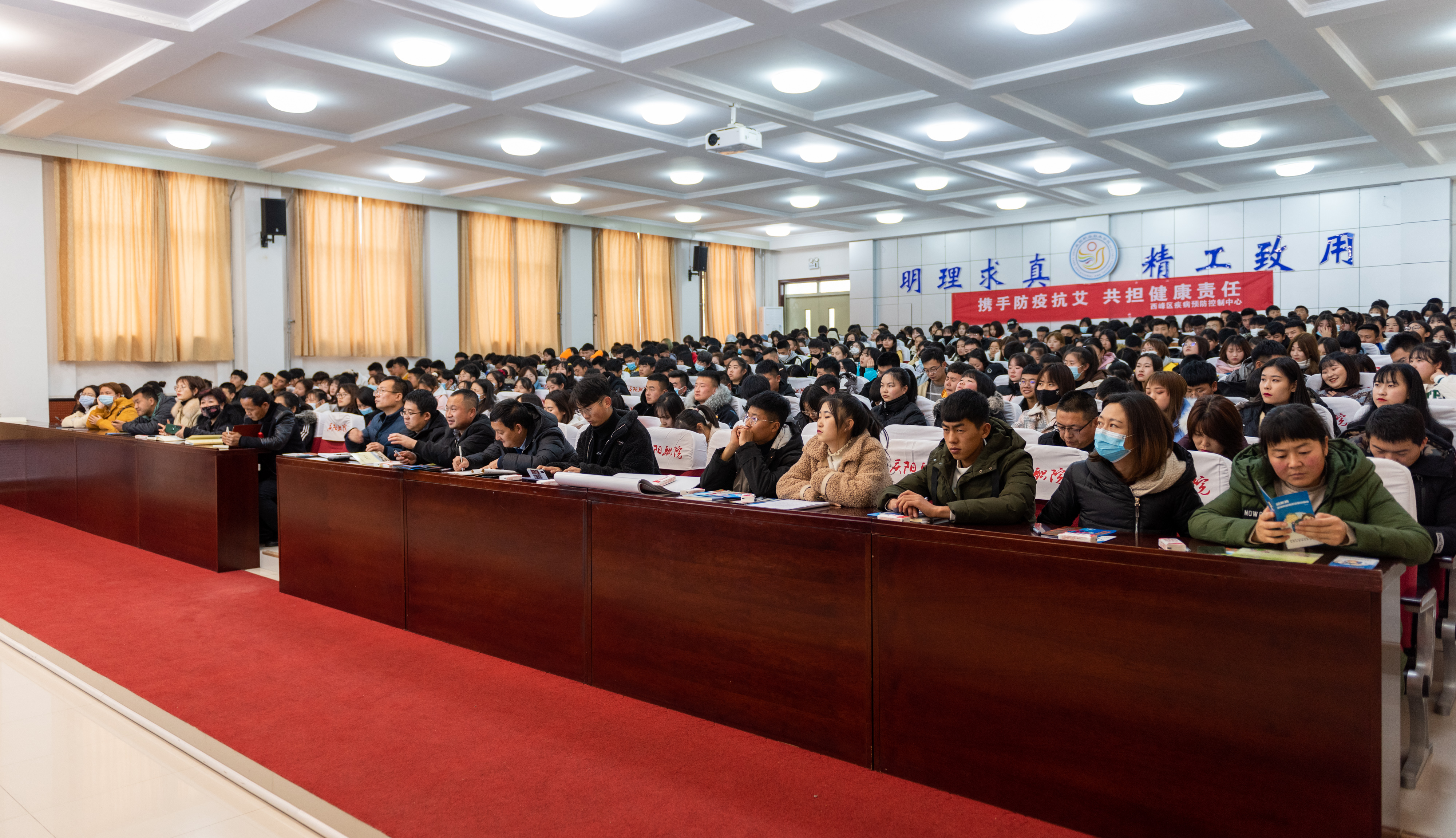 11月30日下午,庆阳市疾病预防控制中心艾防科科长孙小华、西峰区疾病预防控制中心传防中心主任刘丹、以《艾滋病预防及新冠肺炎等秋冬流行病防治知识》为题作专题讲座。西峰区疾病预防控制中心艾防中心主任李红琴、学院学生工作处处长李永刚、后勤管理处处长李根波及班主任学生代表370多人现场聆听,副院长李效鹏主持讲座。