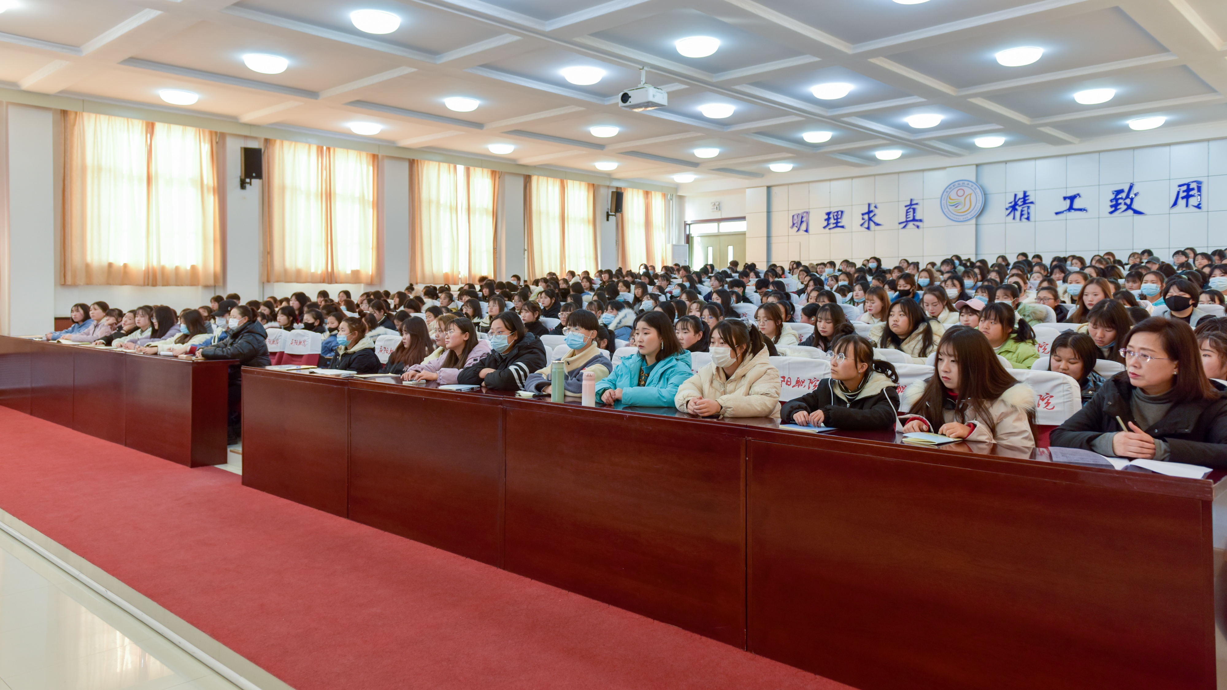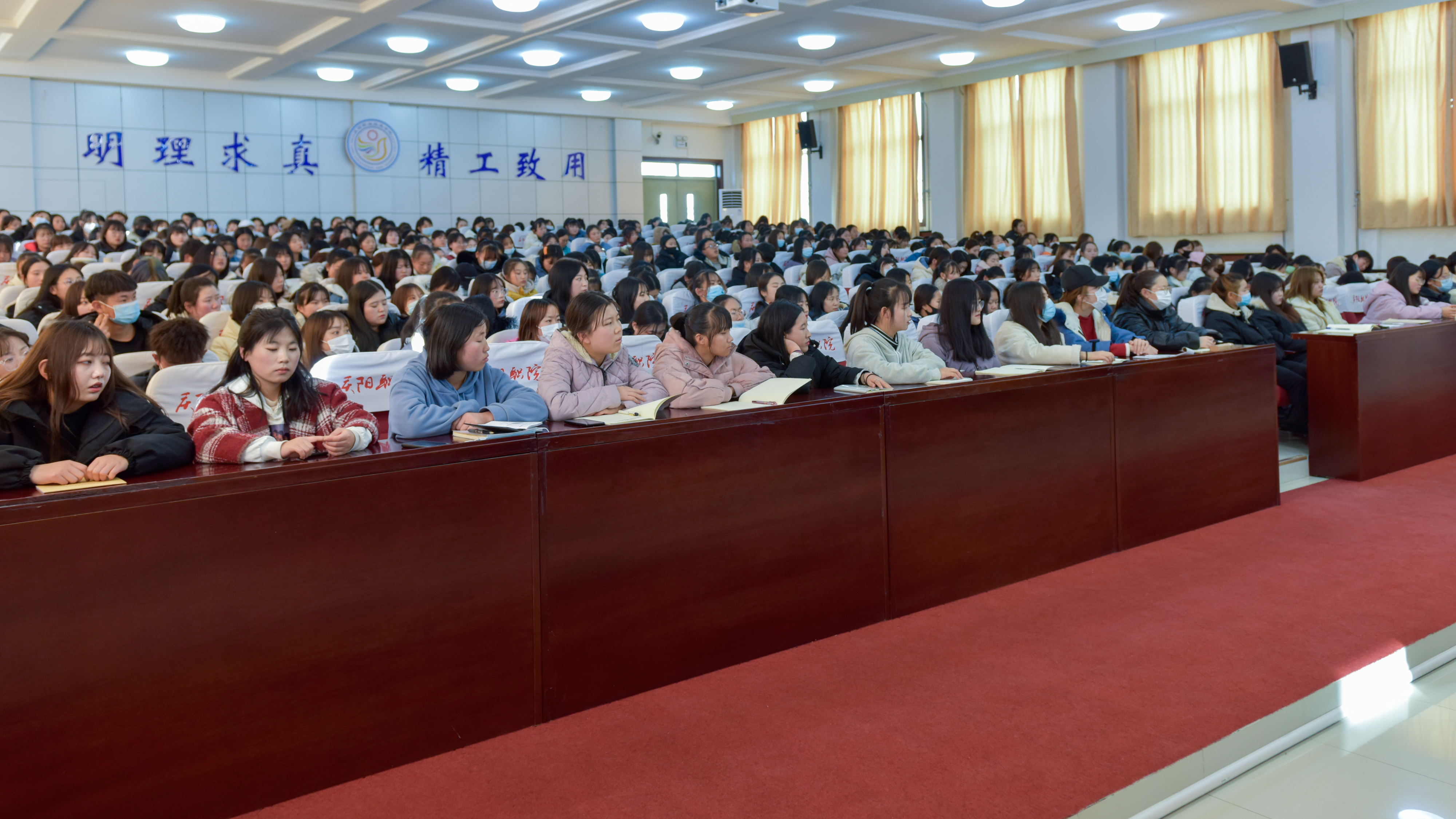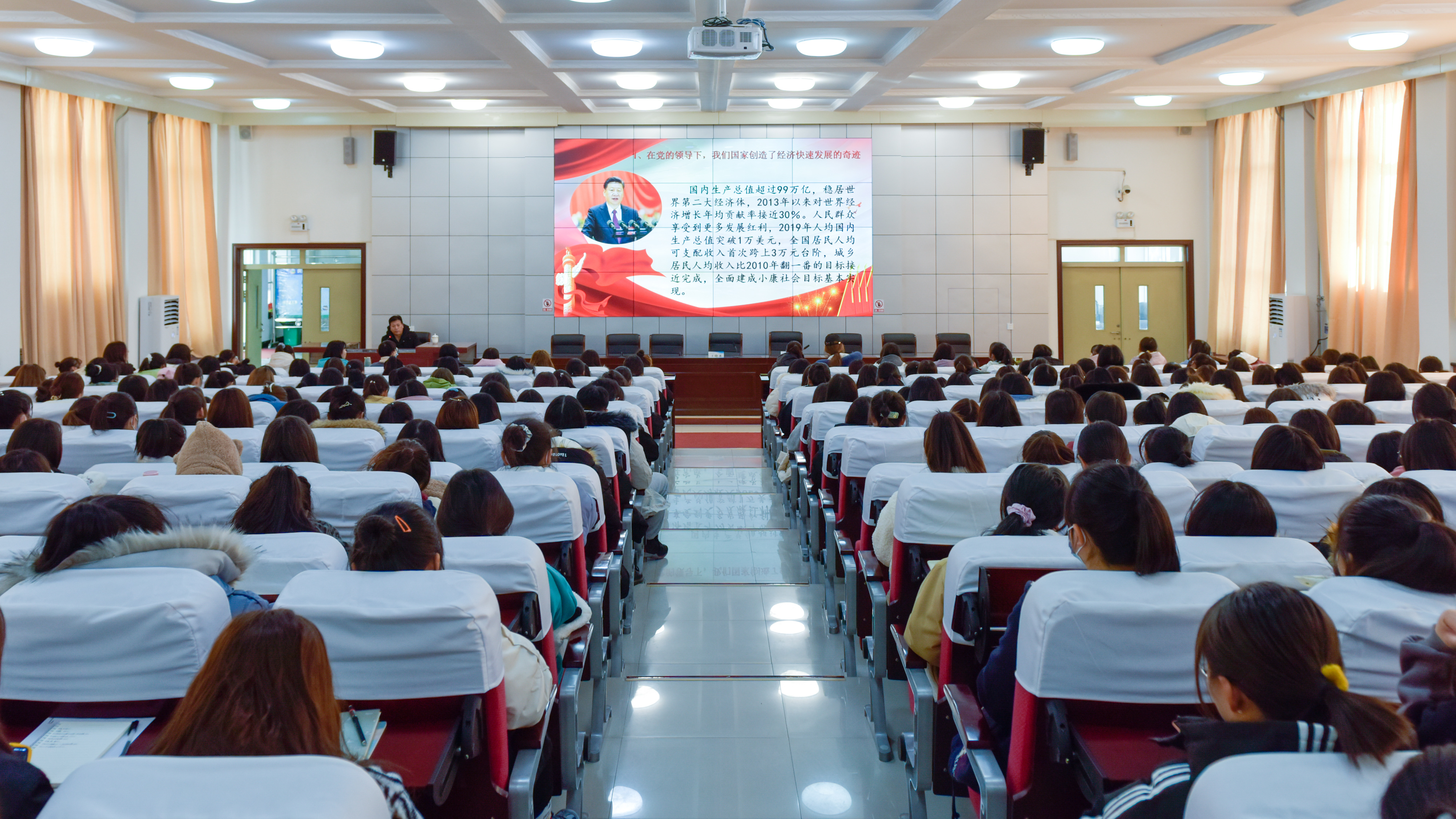 为深入学习贯彻党的十九届五中全会精神,扎实推进全会精神入脑入心,根据院党委统一安排,学院党委委员、副院长曹强走进学生宣讲全会精神,2020级学前教育专业400余名大学生参加,宣传统战部部长王晓冰主持报告会。