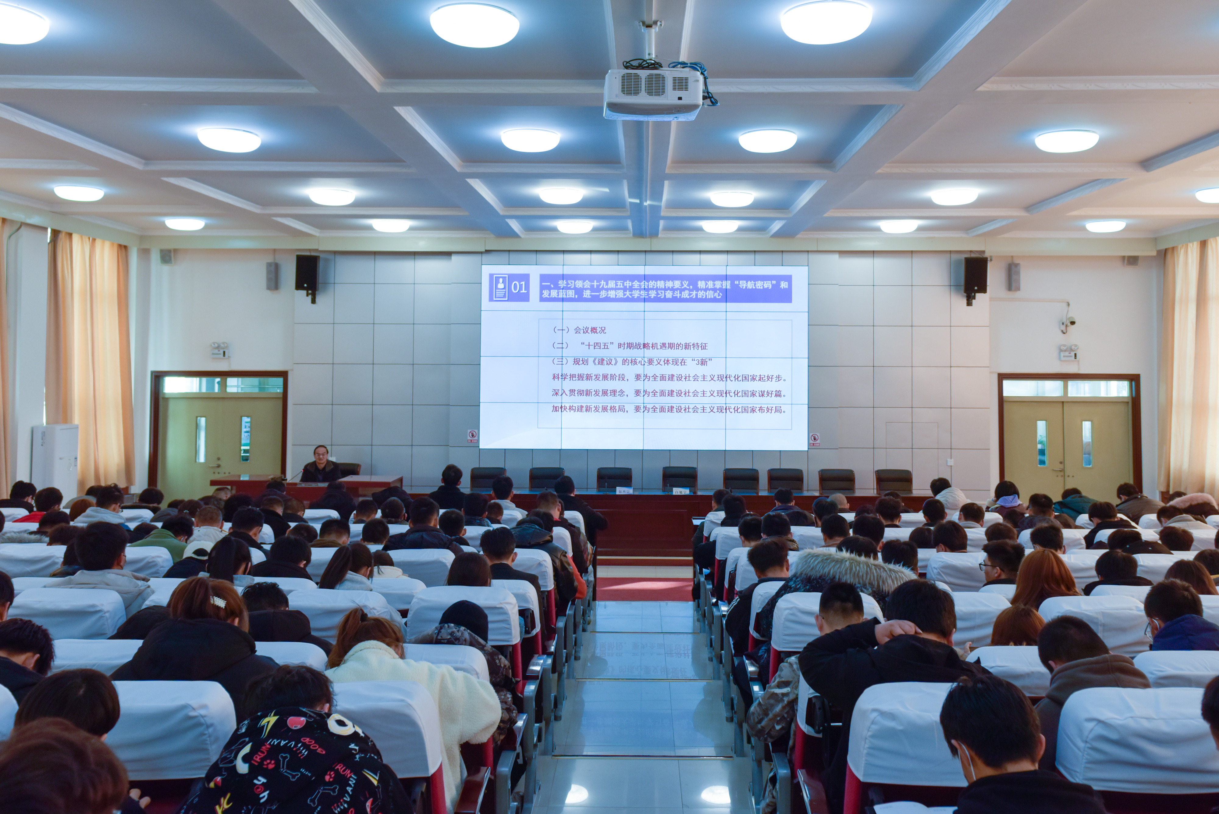为深入学习贯彻党的十九届五中全会精神,扎实推进全会精神入脑入心,根据院党委统一安排,学院党委委员、副院长白旭宁同志走进师生宣讲全会精神,建筑工程系、电子信息工程系共300余名师生参加,建工系党支部书记包杰宗主持报告会。