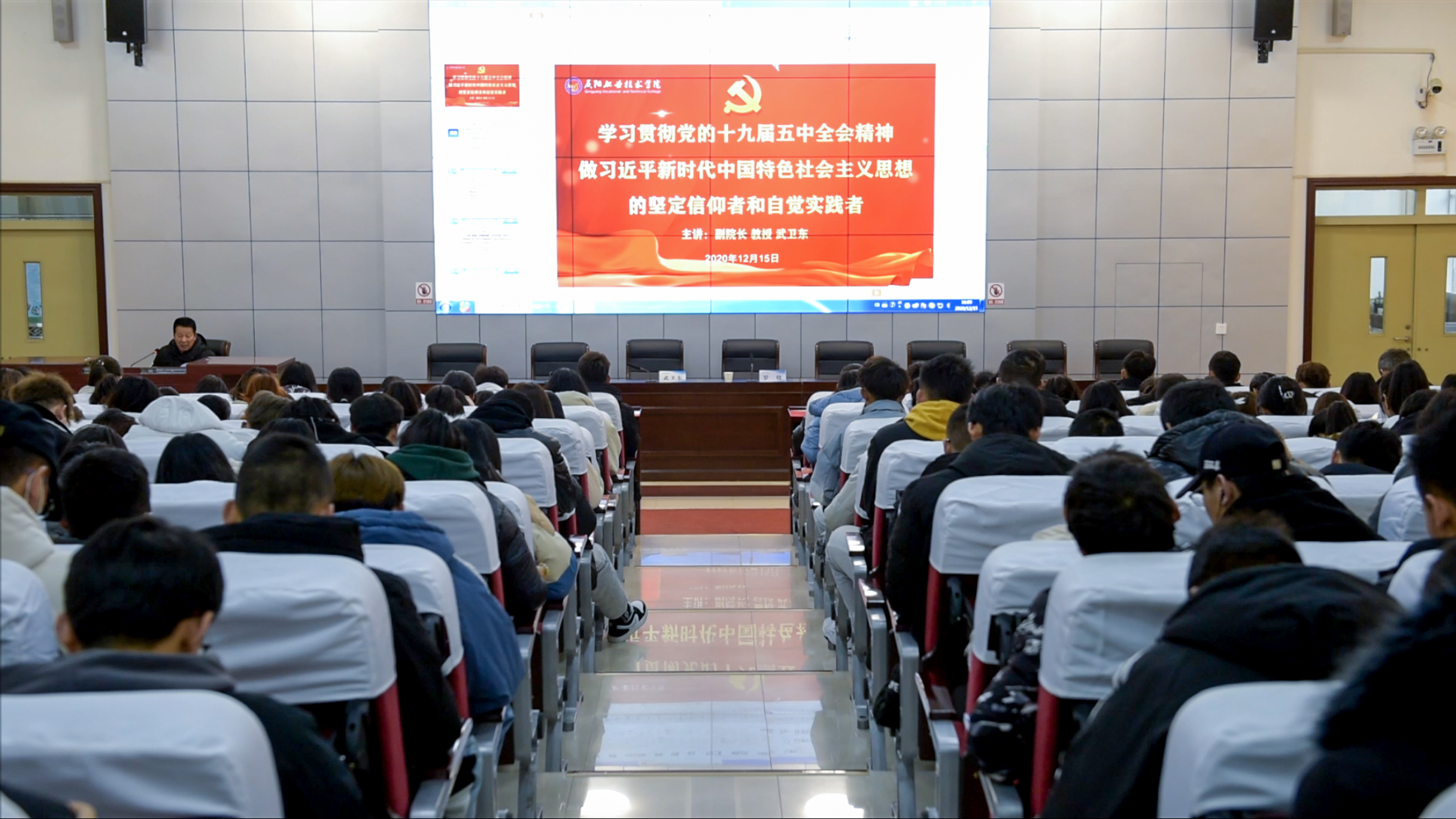 为深入学习贯彻党的十九届五中全会精神,根据院党委统一安排,学院党委委员、副院长武卫东同志于12月15日为师生作五中全会精神宣讲报告,机械工程系、艺术教育系、能源系、体育系共300余名师生参加,体育系党支部书记、主任罗晓主持报告会。