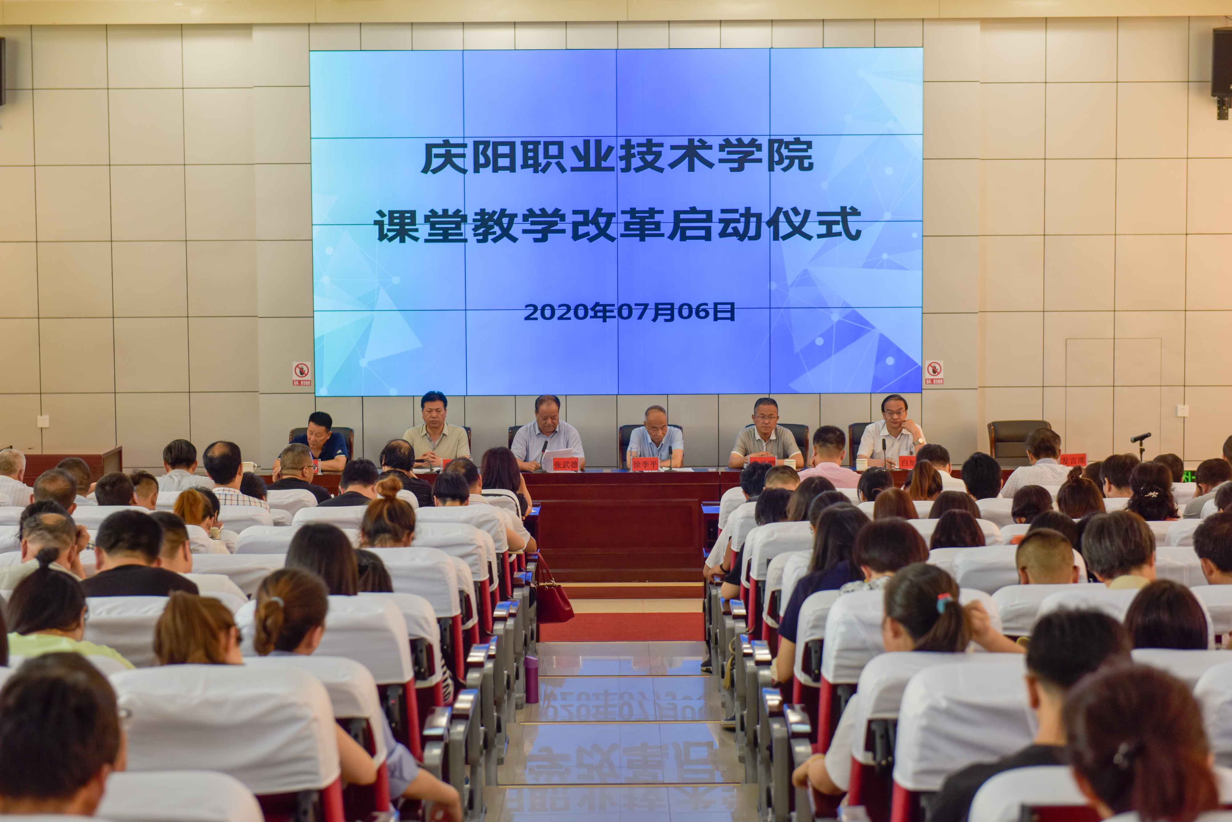 会上,教务处处长杨琳宣读了《庆阳职业技术学院课堂教学改革实施方案》,分析了改革的背景,明确了改革的目的,提出了改革的措施,并针对我院专业设置特点,确定了改革实施的步骤。