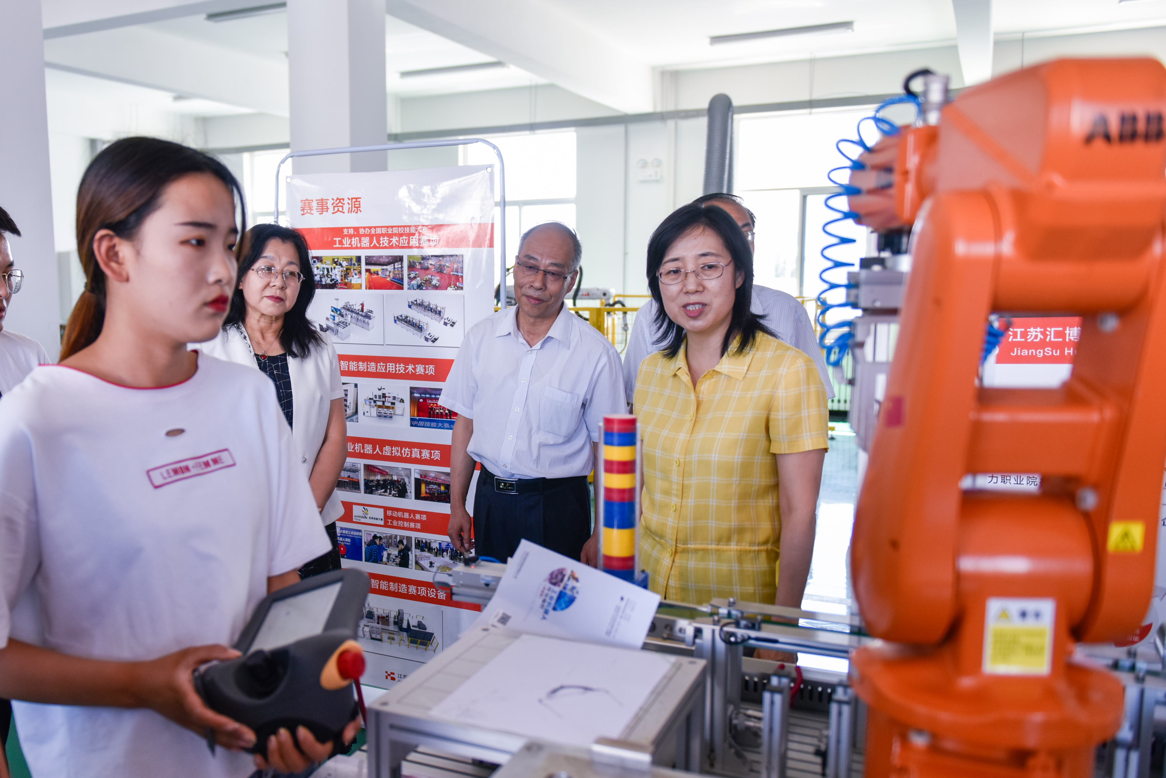 张炯一行参观学院全貌后,在学院领导班子陪同下先后参观智能制造工作室、机器人实训室、艺术设计创新工作室,听取各创新工作室在学生技能培养、教师创新能力提升方面取得的成绩,询问了创新工作室工作现状和今后目标打算。随后调研组在会议室听取工作汇报,学院党委书记徐李平主持座谈会,徐李平对省、市科协对学院科技创新工作的关心重视表示感谢。副院长白旭宁介绍学院概况,汇报学院科技创新工作成绩、存在问题及有关建议。省科协张炯对学院的发展和科技创新工作取得的成绩表示肯定,表示将在项目经费、基地建设、科技创新活动开展等方面给予我院大力支持,指导我院提升科技创新工作水平。她建议学院应围绕培养应用型人才加强学生科技创新意识的培养,积极开展科技创新和社团活动,打通学校与社会、与市场的窗口,加强校企合作,拓宽人才培养路子,充分发挥科协人才举荐的作用,服务经济社会发展。