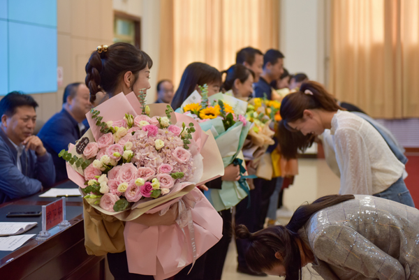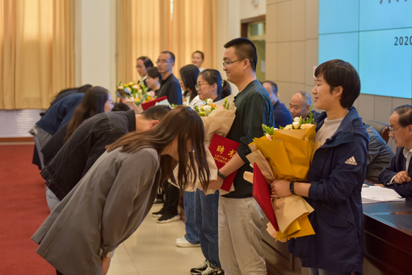 随后拜师仪式开始,院领导为21名指导教师颁发了聘书,23名青年教师分别为自己的指导教师献上鲜花,并完成拜师礼。