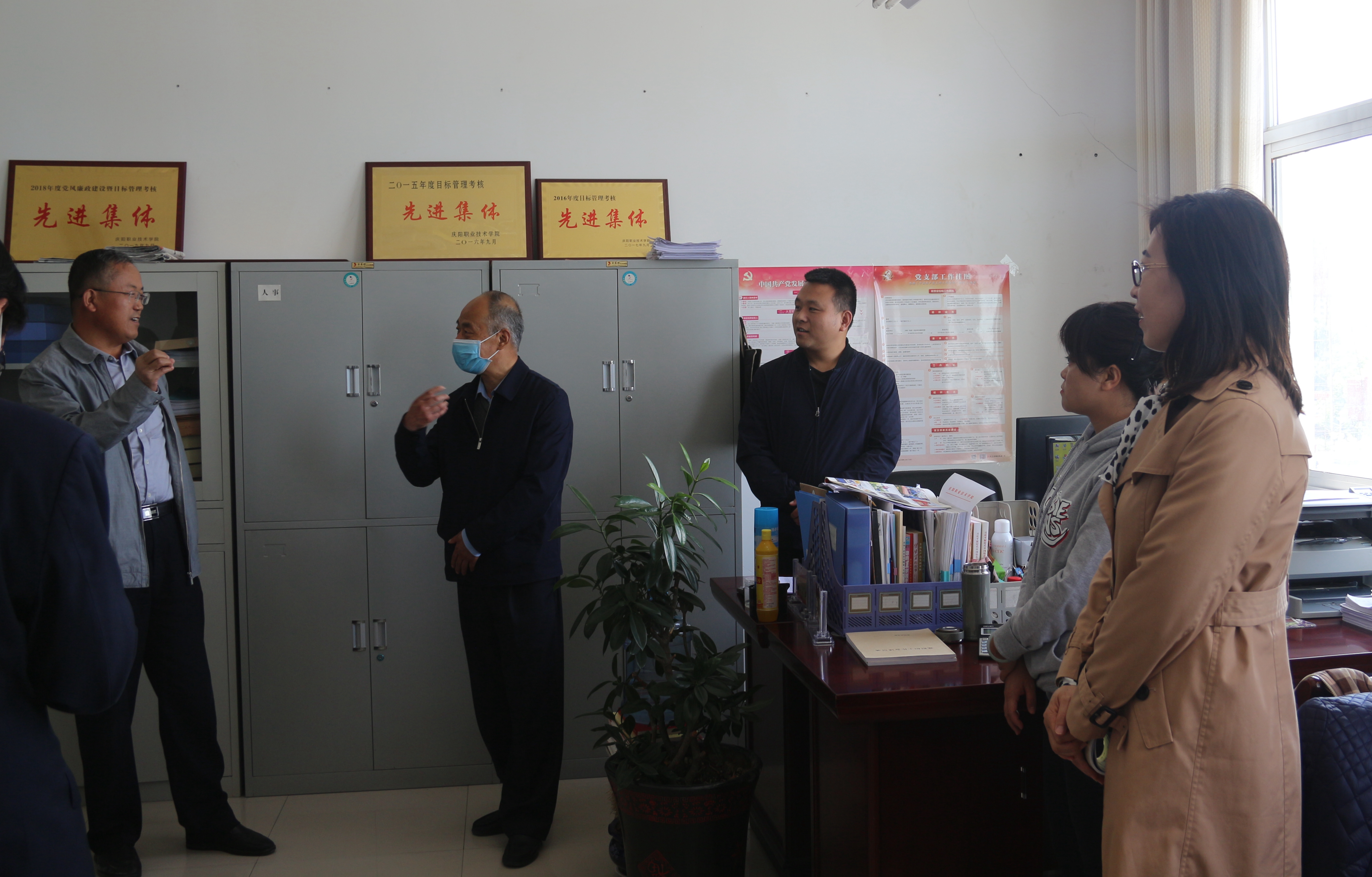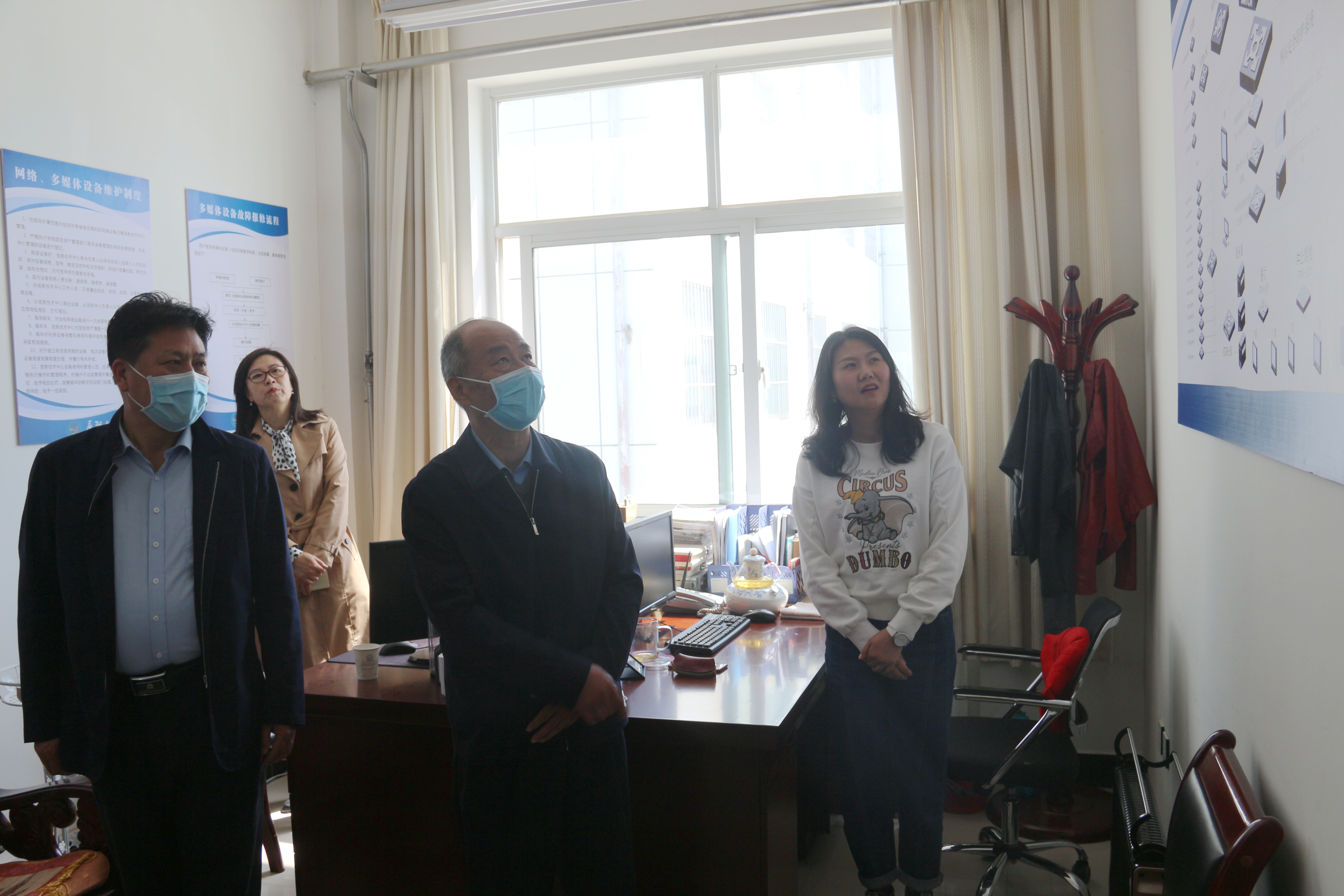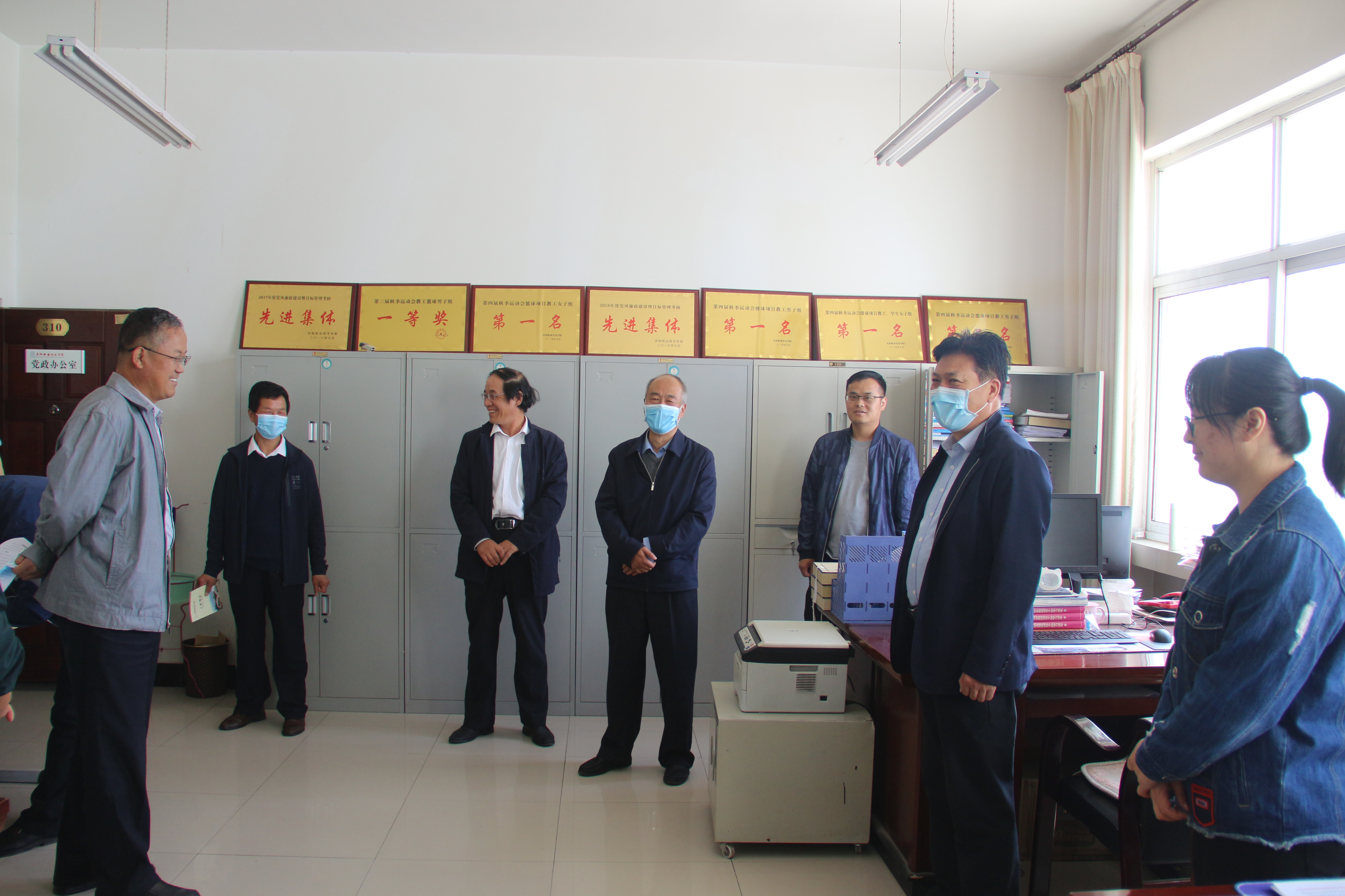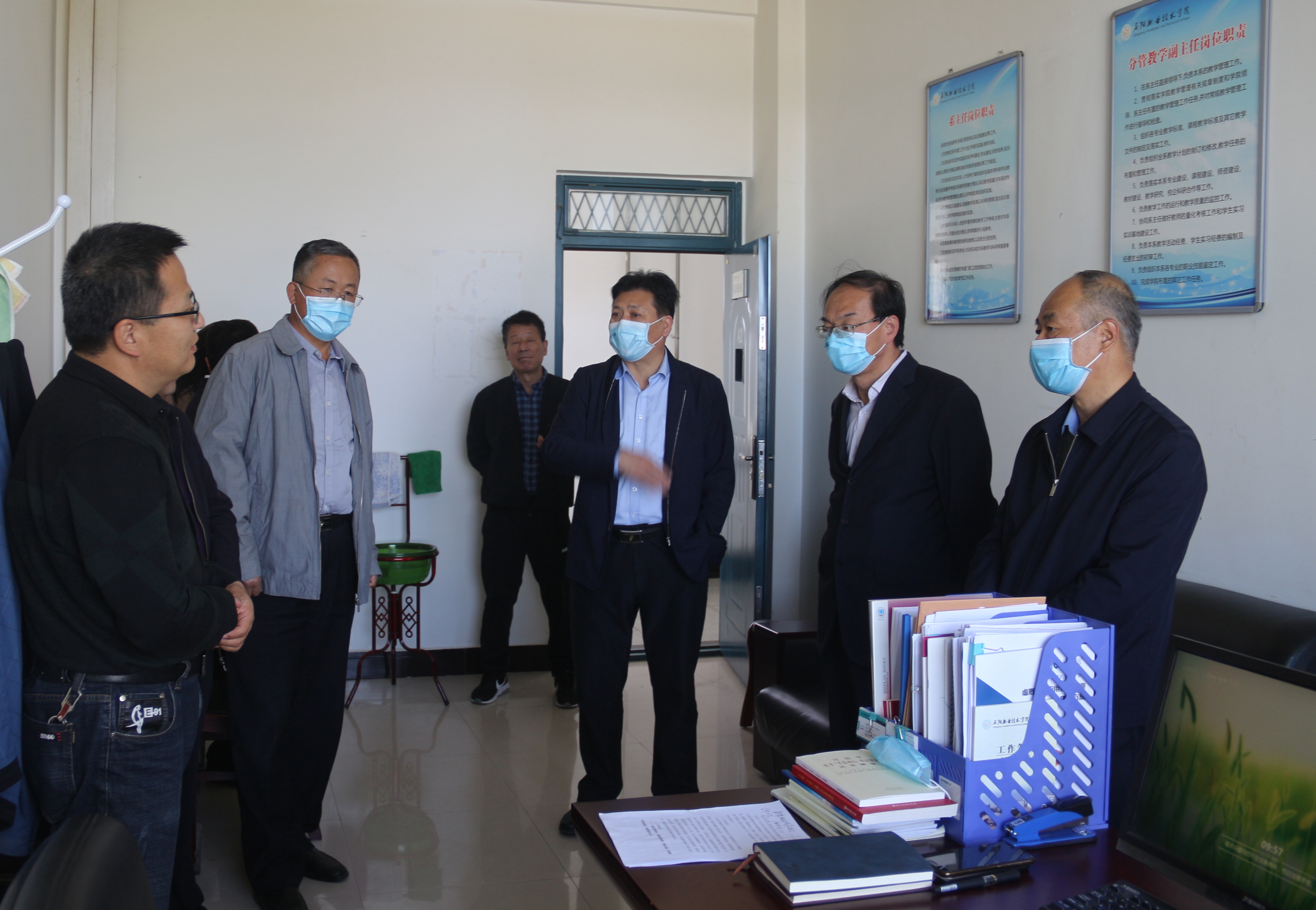 根据省教育厅和市政府批复,学院定于5月16日起学生分批返校复课。5月11日,学院党委书记徐李平、副院长李效鹏、曹强、白旭宁、武卫东带领党政办公室、组织人事处、纪检监察处、教务处等部门负责人对学生返校及开学复课疫情防控各项准备工作进行督查指导,保证2020年度春季学期开学及常态化防控下教育教学工作平稳有序。
