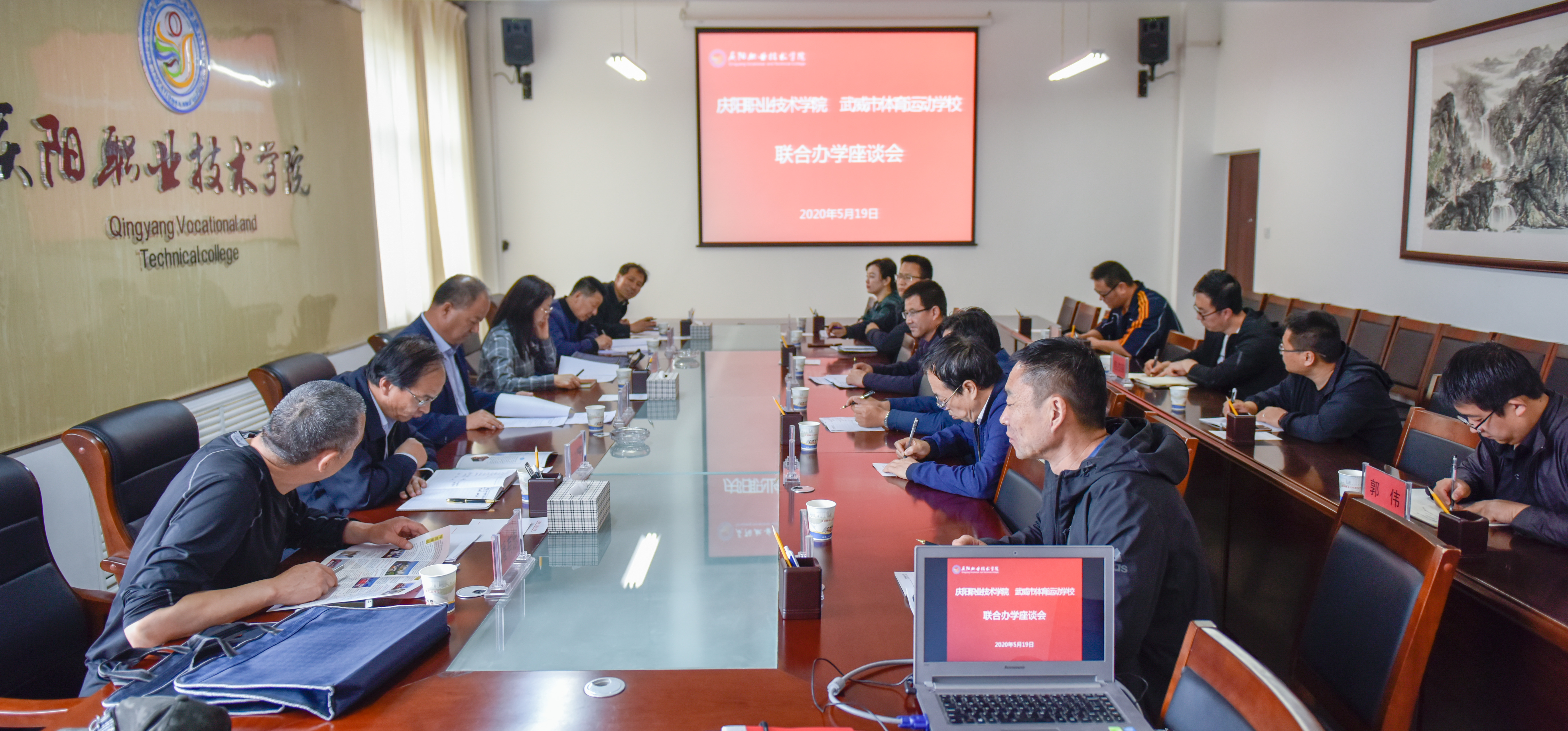 5月19日下午,武威市体育运动学校副校长宁志梅、招生办主任潘有忠一行莅临学院参观考察并洽谈中高职合作办学事宜。院长张武德、副院长白旭宁、武卫东及教务处、招生就业处、各系负责人陪同参观。