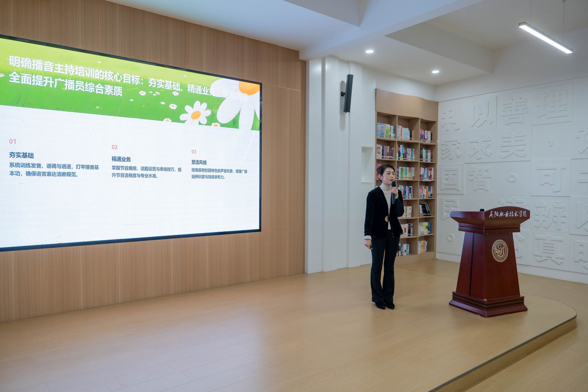 培训中,杨素珍老师以“融媒体内容策划、采编与播音主持实务”为主题,结合自身丰富行业经验,以“夯实基础、聚焦实战、着眼融合”为导向开展教学:先从声音塑造、语言表达等基础技能切入,逐步深入讲解节目编排、话题策划等实战技巧,帮助参训学生系统构建播音主持与内容创作知识体系;同时重点强调“念稿”向“说话”的思维转变,通过案例分析与情境模拟,详细拆解重音、停连等语言技巧的运用方法,指导学生结合校园生活节奏与热点话题策划贴近学生群体的融媒体内容,并围绕广播与新媒体融合发展趋势展开剖析,鼓励学生向集采、编、播能力于一体的全媒体内容创作者转型,助力其夯实专业基础、提升表达能力、拓宽职业发展视野。