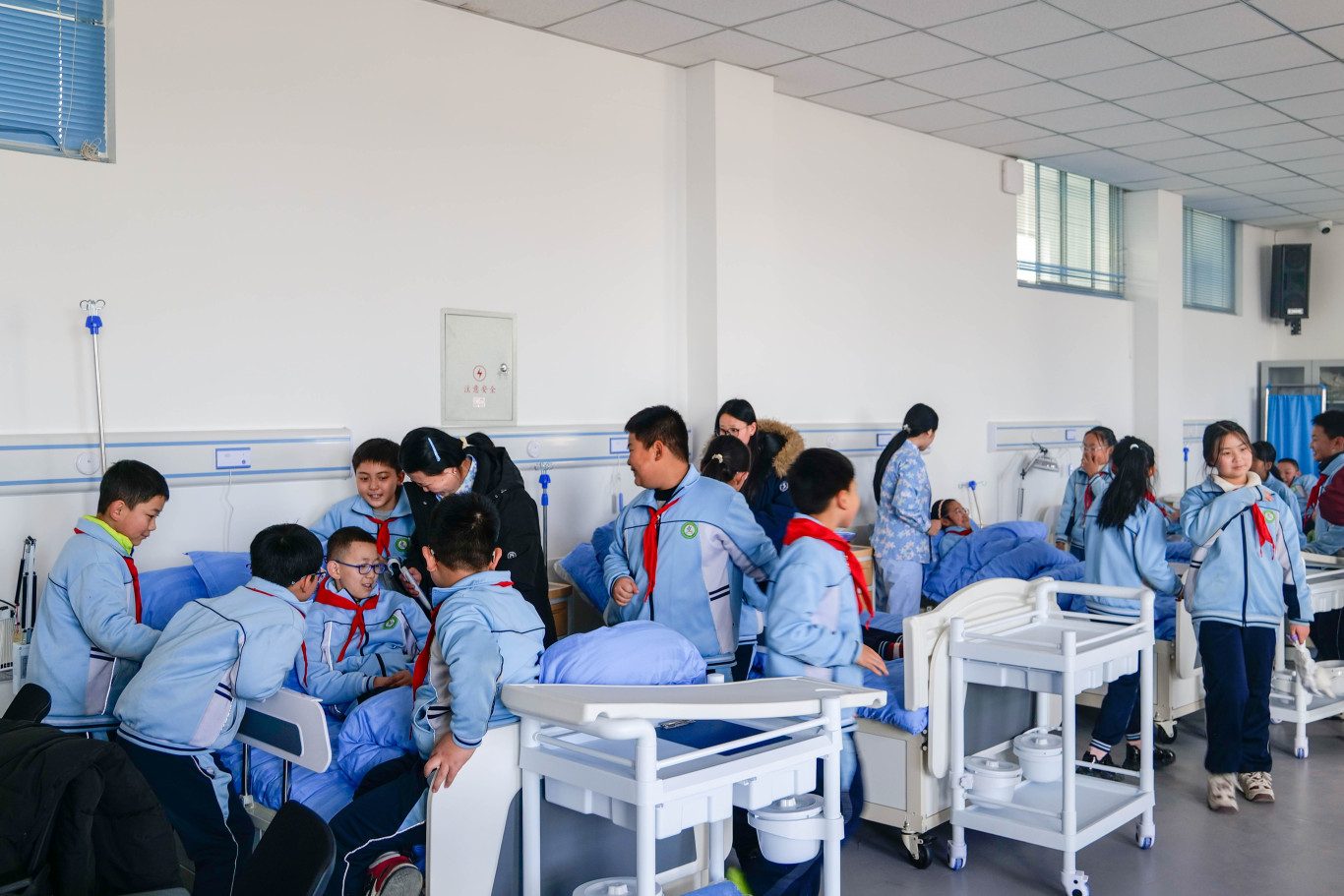 11月27日下午,南街小学四年级130名学生在校领导及教师的带领下,走进庆阳职业技术学院,开展以“职业启蒙与劳动体验”为主题的社会实践活动。本次活动旨在通过沉浸式参观与互动体验,帮助学生拓宽视野,感受职业教育的多样性与实用性。