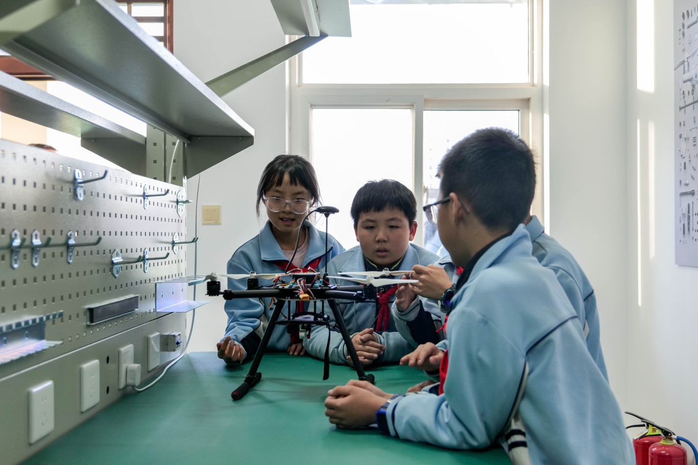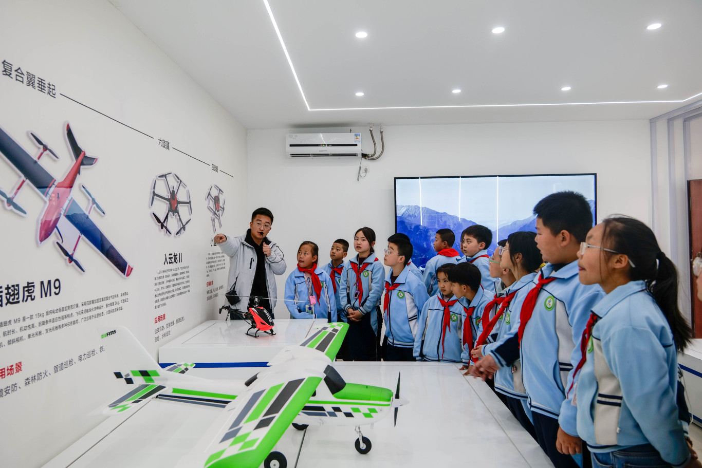 在臻善楼“东数西算数字经济人才培养基地”,学生们了解了数字技术在现代经济社会发展中的应用;在笃行楼,同学们体验了蒙台梭利实训室的互动教具和奥尔夫音乐教室的节奏游戏,在新媒体运行工作室尝试了简单的视频剪辑操作。在“安吉游戏”体验区,通过角色扮演感受幼儿教育的趣味性;在笃行楼先后参观老年基础照护综合实训室、中医养生实训室及康复训练实训室,学习基础护理知识与传统养生文化;在酒店综合实训室,同学们还观摩了茶艺表演与调酒技艺展示,感受文化旅游行业的独特魅力;在庆阳市低空经济人才培养基地,通过实地参观航空模拟器与无人机操作演示,学生们直观了解了低空经济产业的发展前景,激发了对新兴技术领域的探索兴趣。